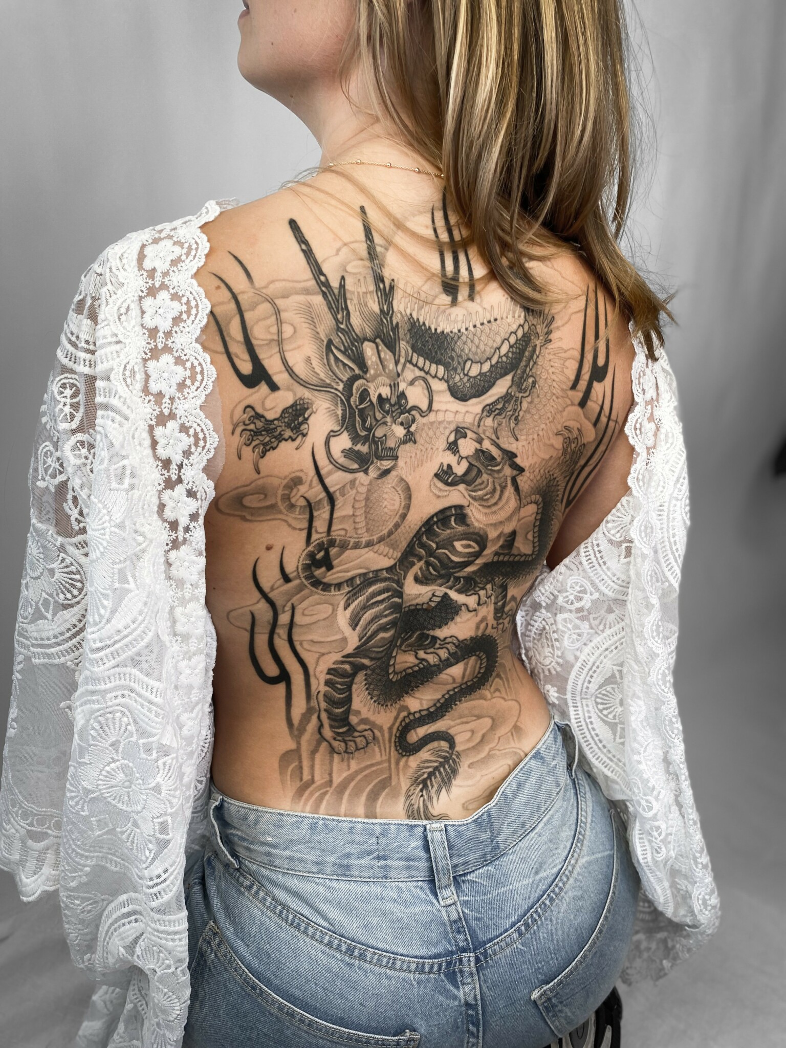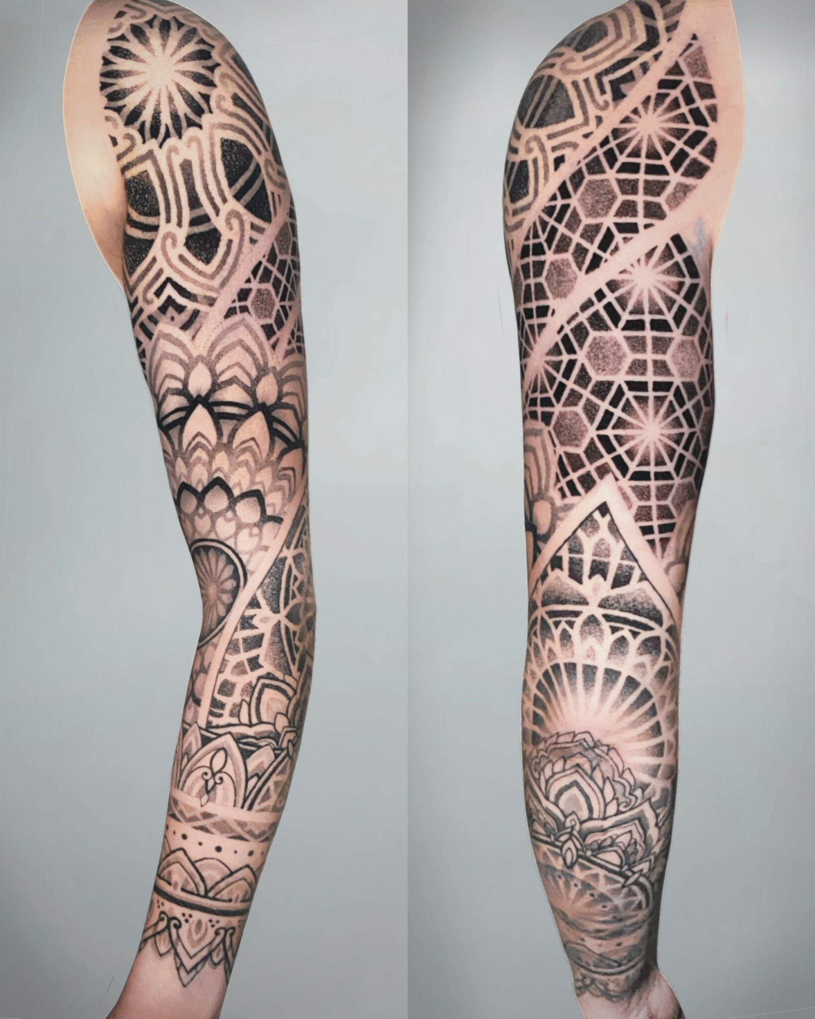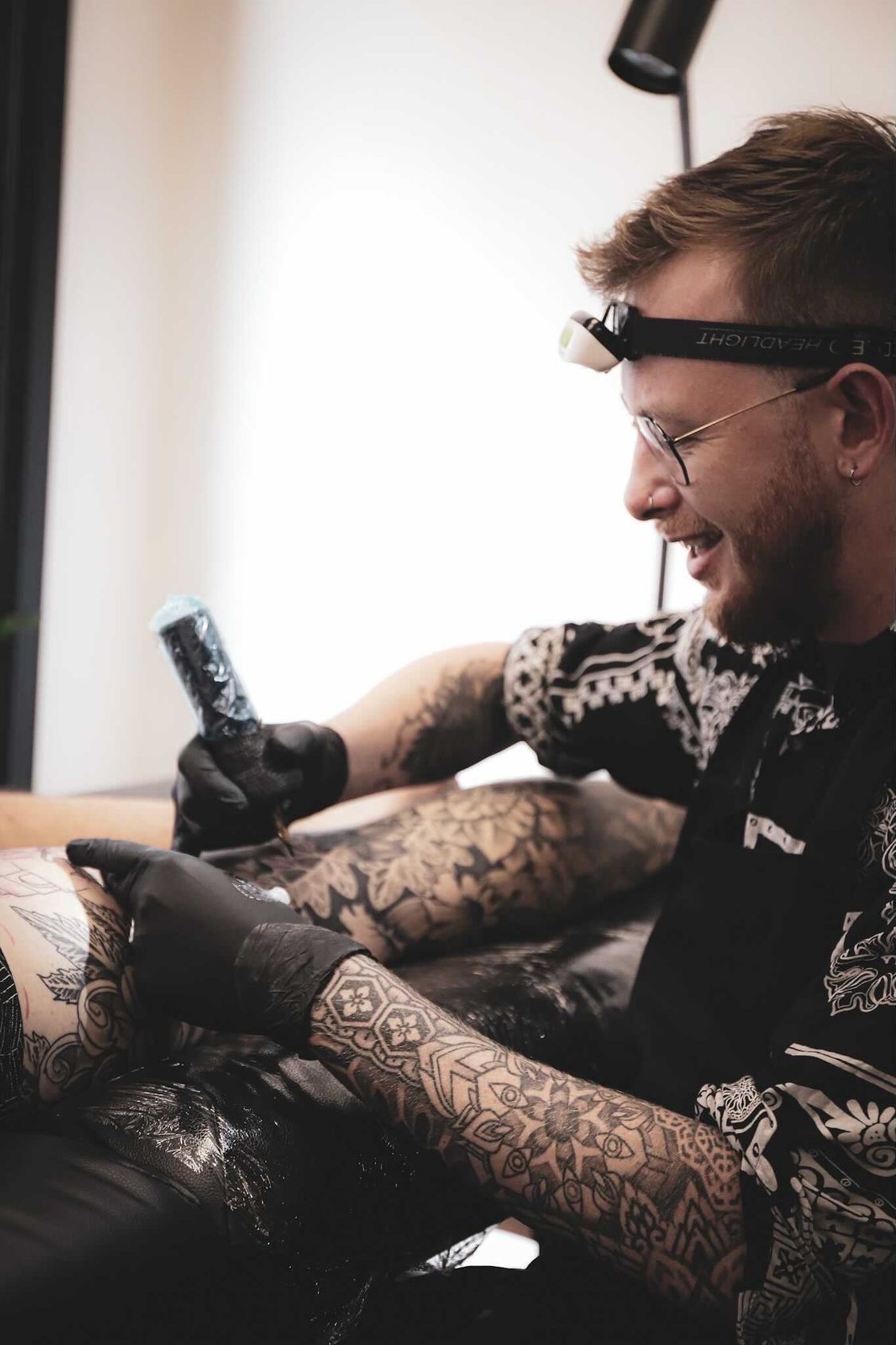My name is Felix, I’m a tattoo artist for 8 years now. I am not done developing my style yet, but I mostly do a combination of ornamental blackwork/geometry, surrealism and Korean/japanese inspired work. I just got into the business as tattooing started to reach its peak. The taboo of having tattoos is long gone and only grandparents seem to have a strong adverse opinion on the matter, I never thought I would become a tattoo artist, looking back I think if I would tell my younger self this, he wouldn’t believe I’d end up in such a – for lack of a better word – cool job, I’m happy this fell on my path and I do think it is my calling, or at least the thing that will cultivate my talents the best. It is hard work and it takes a life of dedication. Right now the industry is blowing up and many people are deciding to persue the same line of work. If this is your dream, go for it! If it is your dream to be a cool tattooer, maybe consider what you love. If it is drawing, for hours on end, and you like people, this might be the right thing for you. Don’t become a dj if you only play music and don’t create it,