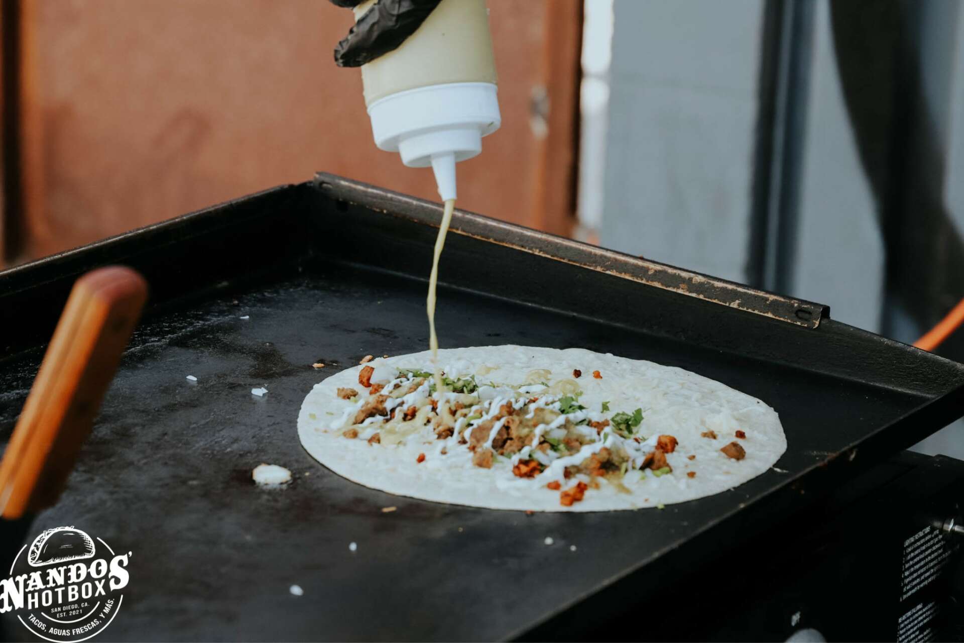 Originally my fiancé and I started selling flower pots at the Spring Valley Swapmeet that my family makes in Mexico. During that time as swapmeet vendors we would occasionally take our own home made lunches or would need to buy food there on the occasions that we did not take lunch. We quickly got tired of the food at the swapmeet and kept taking our own food which was usually home made burritos I would make and they were always different kinds. Eventually my fiancé convinced me that I should start selling my burritos at the swapmeet as well and that’s how I got started as a food vendor. I was able to book clients for lunch delivery and meal drop offs that I soon realized being a food vendor was something I was much more passionate about and good at! I was selling over 250 burritos a day and could not keep up with the demand. Shortly after we decided I would focus as a food vendor primarily and started Nandoshotbox!
