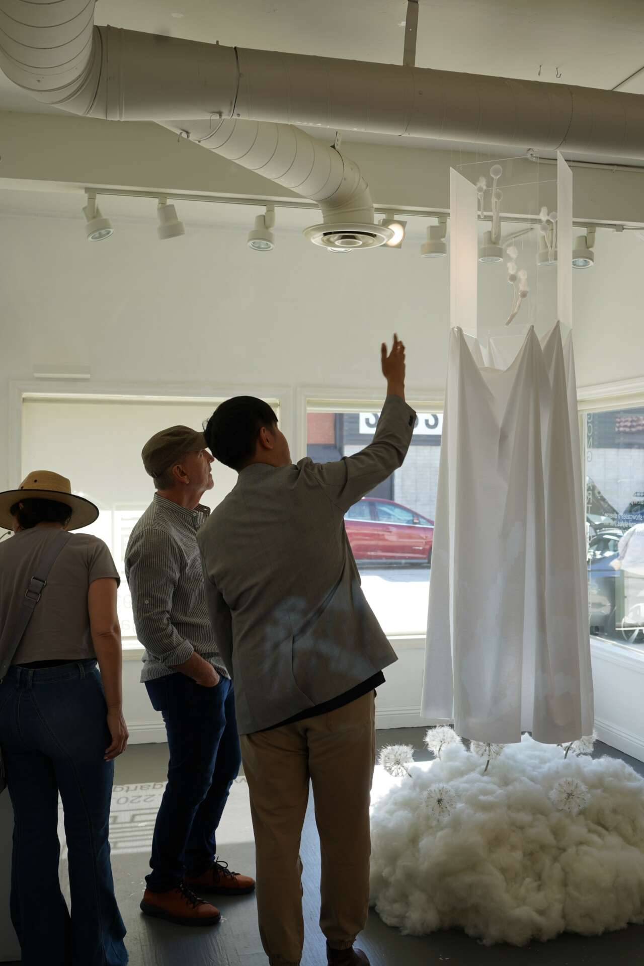 In our dual exhibition, my talented co-artist and I present “Dandelion,” an installation that delves into the delicate equilibrium between nature’s ephemeral charm and humanity’s technological and artificial constructs. This layered piece contrasts artificial dandelions set on cotton with their voxel projections and sculpted renditions, urging viewers to ponder the true essence of hope in today’s world.