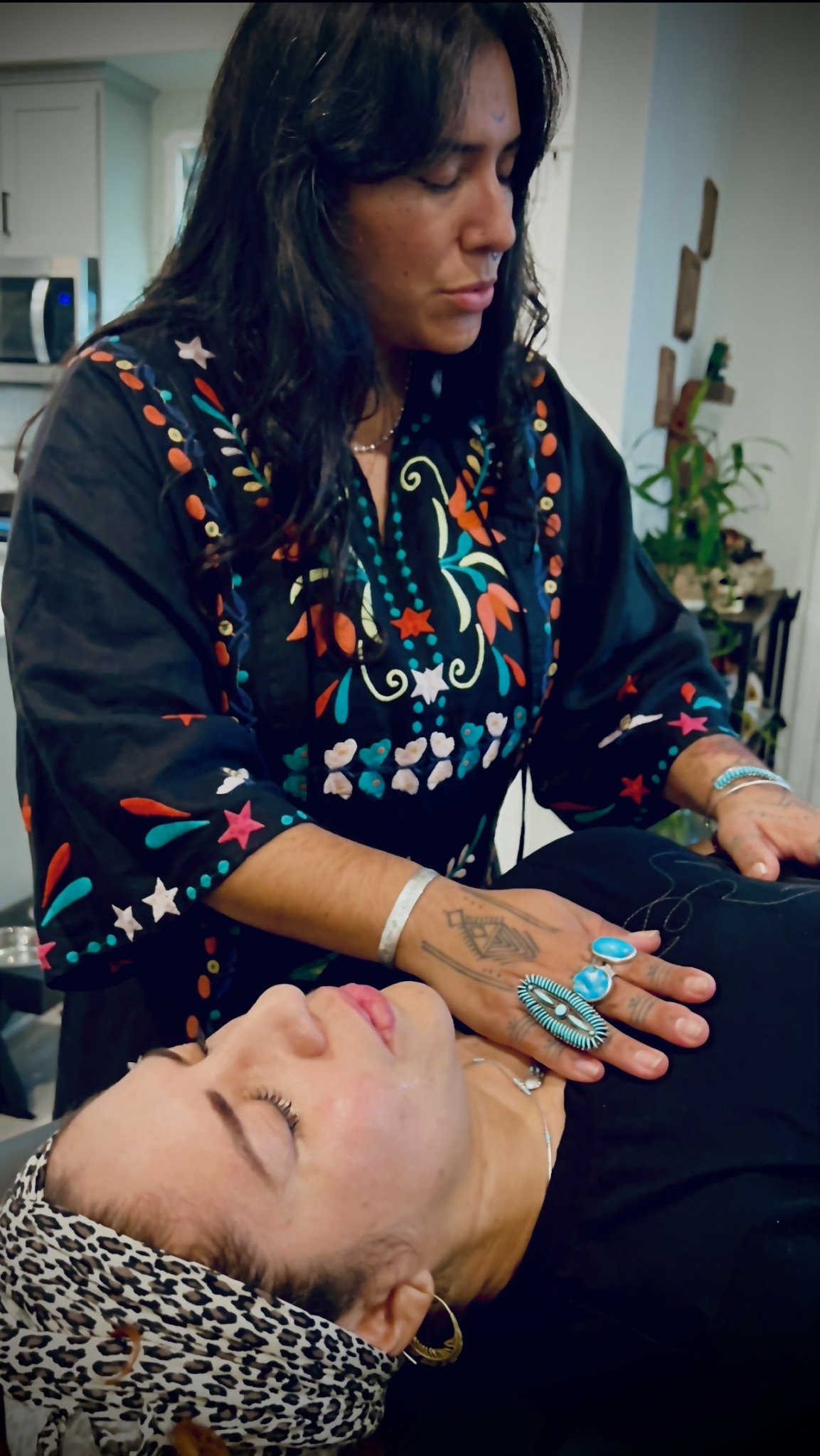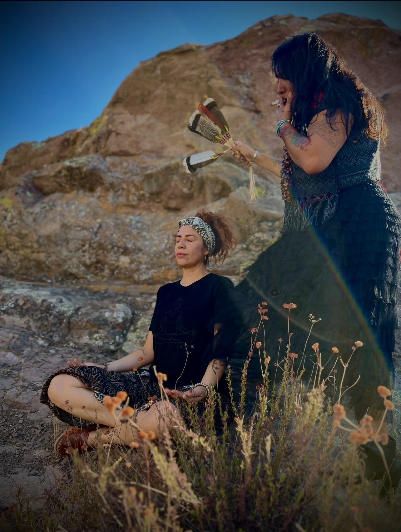 I spent almost two decades learning and devoting time. Even though what I do as a native Indian medicine woman was back in the day Mis-understood by the people of this western world, I worked in silence only by word of mouth. I started working less in western medicine and more in my spiritual practice. Always by word of mouth and for donations. I felt a great urge to let go of the years in surgery along with the safety it provided with money in order to fully immerse myself in my spiritual practice. I retired myself from full time surgery and left for more training and simple living in the jungles of Peru. I let everything go and honestly it was the best decision I ever made. I still work for donations and word of mouth. I can truly say I have met the most amazing people, I’m extremely grateful for every encounter. I love and appreciate what I do and even though the life and the living is not as glamorous as my fast pace and high end surgical position, I’m so very deeply happy I took the leap to change my life and do what I love. Now I utilize all my natural gifts by energetically helping my clients move trapped energy working with the nervous system. I also work to move emotional energy in the body guiding the client to heal themselves. I use native prayers, ceremonies, and traditions mixed with some modern ways to assist with movement in the clients emotional, physical , and mental bodies. There is no basis in religion nor do I make anyone do anything I can’t explain both physically and psychologically. I truly poor love into every yazhí (spiritual child) of mine I look at everyone as if I were their mother no matter the age. Helping to support the movement within them and sharing my love for their humanness. I will always be proud of letting fear go and doing what i love, it was worth the risk in every way.