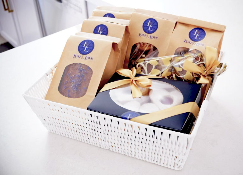 We love what we do, and truly put love into each one of our bakes. We hand package everything and label each loaf bag ourselves because it really is from our kitchen to yours, all made with love.