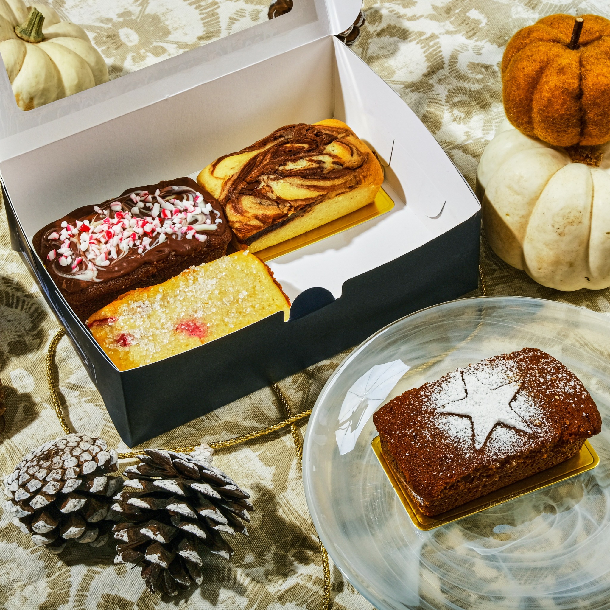 Currently, our four classic flavors are: Nutella swirl, coffee cake, banana bread and our gluten free chocolate orange. We are transitioning into our winter menu which is: cranberry orange, gingerbread latte with salted caramel, Black Forest, and raspberry champagne. For gifting, we offer a beautiful holiday gift box with 5 mini loafs. We also offer a box of assorted cookies: oatmeal chocolate chip, linzer, and red velvet crinkles.