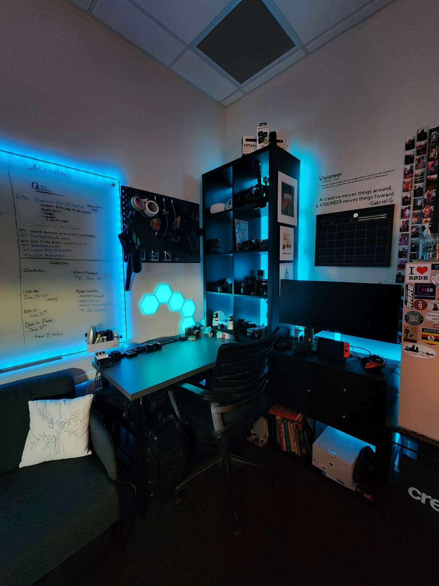 I have been doing creative work full time for about 5 years now. It has been the scariest most satisfying thing I have ever done. I do believe in hustling for what you want, but I also believe that there are strategic moves that one needs to make in order to achieve short and long term goals. One move that I made early on was to join an awesome community called Geekdom. They are a community shared workplace that believes in the investment of start ups here in San Antonio. I met so many great people the helped me in my journey. It is where we have our office and headquarters set up. I started off fighting for tables and wifi at local coffee shops, now we have an office on the top floor of a historic building overlooking the downtown skyline.
