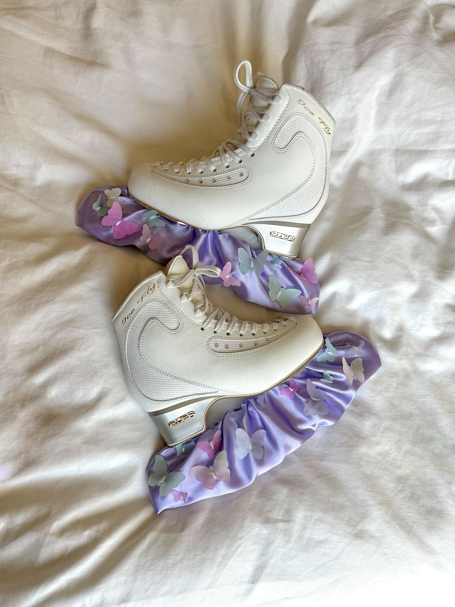 After nearly 20 years away from the ice, I saw a video by the influencer @sophia.lazuli sharing her journey as an adult skater and it really inspired me to get back on the ice. So, I got myself a new pair of skates and signed up for lessons. However, when I looked for soakers, I couldn’t find anything that I really liked. As a creative person, I thought, “Why not make my own?” So I visited the fabric store, watched a few tutorials, and read a few blogs. After a couple of tries, I made my first good pair of soakers. They turned out beautifully and when I took them to the rink, people would compliment me and ask where I got them.