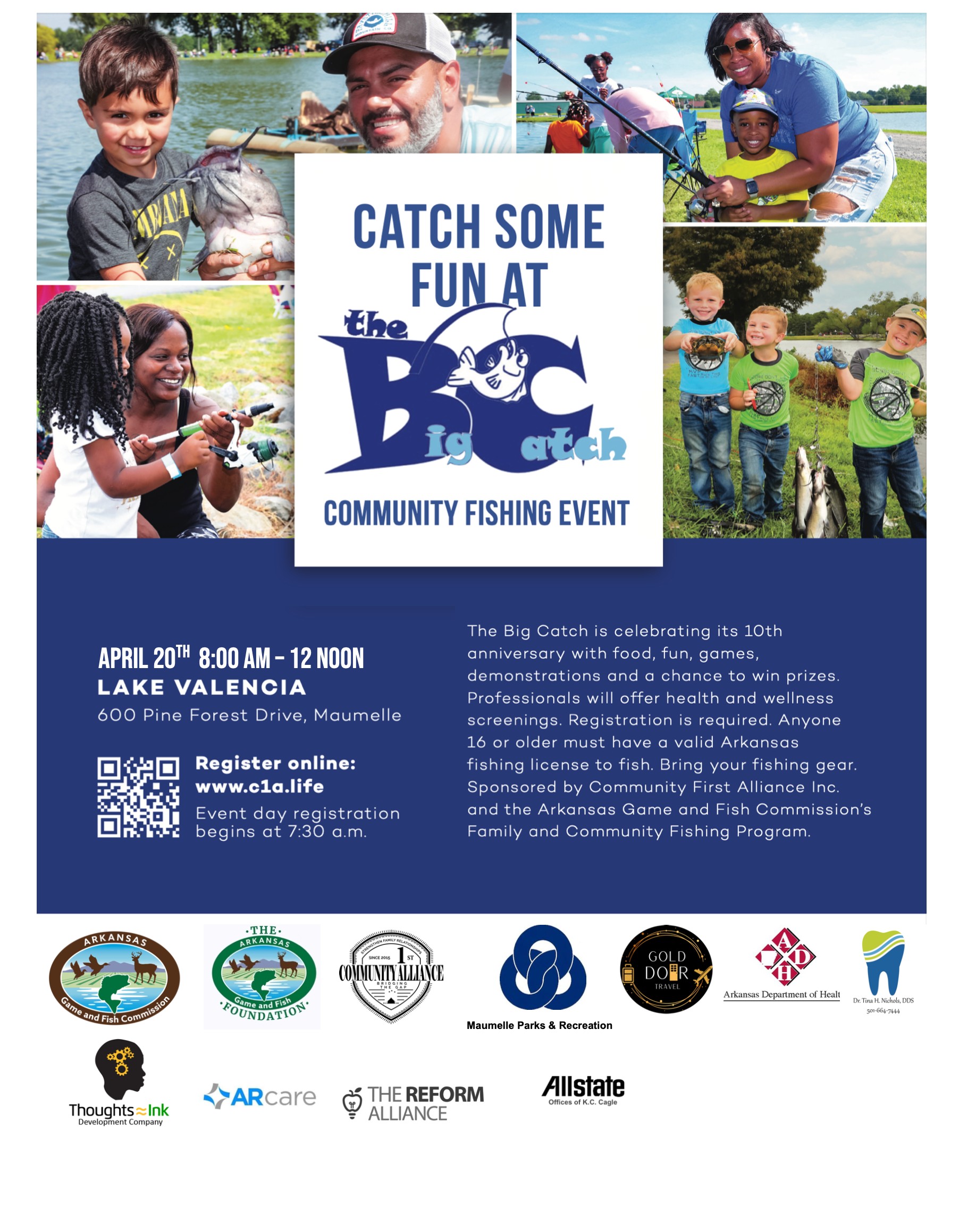 The participants also have the opportunity to receive a free health screening. We have been recognized as the largest family fishing event in Arkansas. I am mostly proud of the services we provide to our participants during our event. We have local vendors who participate set up at our event. The Big Catch Community Kids Fishing and Health Fair impacts our community by providing free meals and screenings for over 2,000 participants, we have had as many as 5,000 in attendance at our event in May of 2017. This program is ran solely on donations and sponsorships. Our companies goal is to offer this program to communities who desire to spend much needed time with their families through outdoor recreation and fishing.