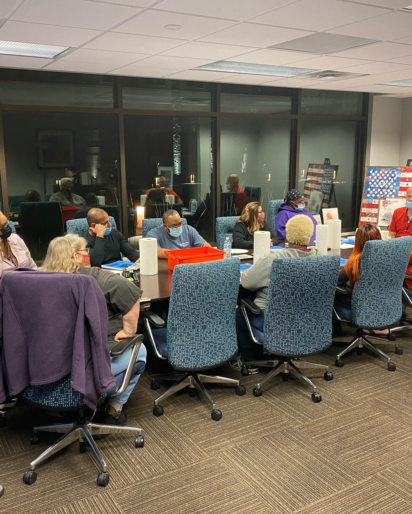 was a man painting currently and a woman signing up people to attend an art class thru the VA. I