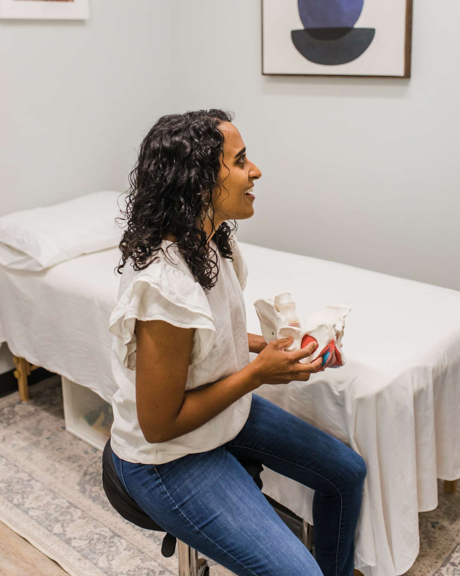 I am an Occupational Therapist (OT) and Certified Lactation Counselor (CLC). I specialize in treating women, transgender men, and non-binary people with ovaries and a uterus with a variety of symptoms related to pelvic floor dysfunction. I decided to specialize in pelvic health after my own births and the lack of care I received from my own healthcare providers. I barely knew the specialty or the need existed until my own experience. While home with my two children, I took multiple post-graduate courses to educate and further myself in this speciality.