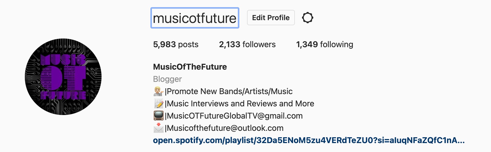 Music Of The Future was an idea that kind of fell in my lap but with a lot of hard work with it. I found that independent music artist across the globe were finding it difficult to get PR because of pricing so I worked with an artist not far from me named Jessica Bell then it went on where I helped a band then decided I wanted to create something where bands and artist could share their music using a platform for an Interview,review or one of of other features we other and continuously create new ones to stand out all for free. 8 Years in and its still going we have new bands/artist submitting daily from all over the world and giving us great feedback but also have returnees who are welcomed for another feature potentially yet still free of charge.