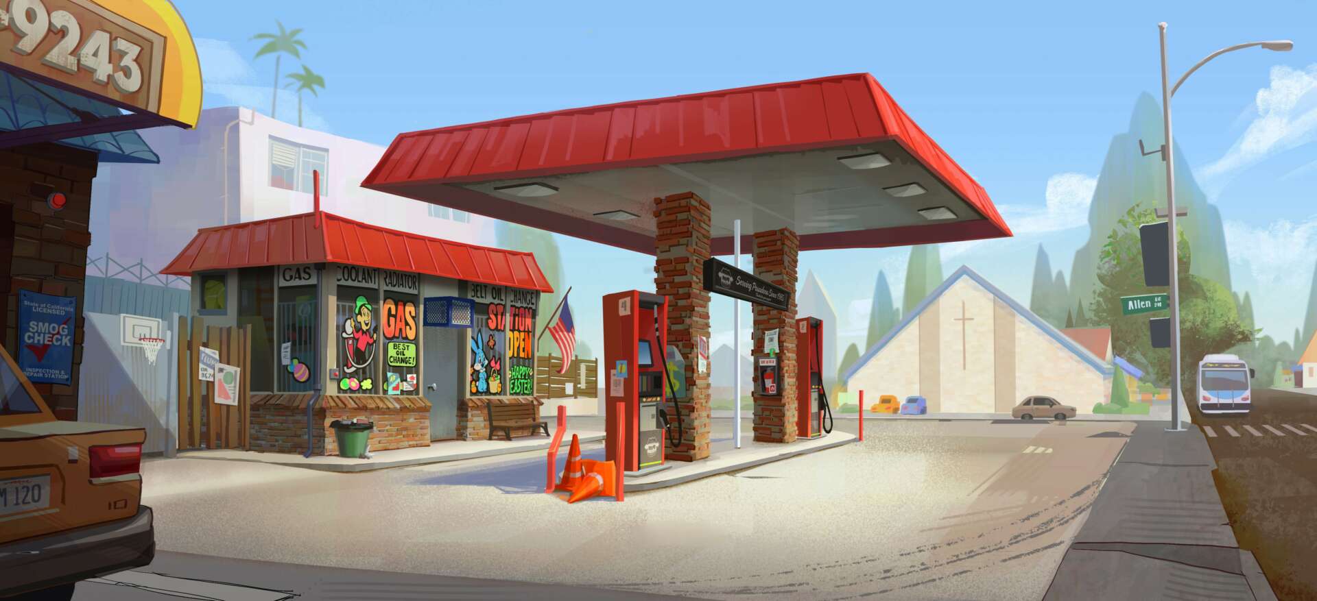 I specialize in visual development, world building, background painting, as well as any type of illustration work for animation and game industry! For people who might not be familiar with this industry, before any animation or game goes into production, the ‘look’ of the project has to be designed first, and that is where visual development artist/concept artist came in! I mostly focus on world building, set design, and key scene painting, but I also like to do layout drawing and character as well! I’ve been told that my strength lies in my uses of color and my ability to create a story-driven cinematic painting. Storytelling is everything when it comes to creating a painting for me, and I tried to capture that plus the mood and emotion I want to convey in all the paintings I create. I am also flexible when it comes to style, and I can paint in both rendered and a more graphic style!