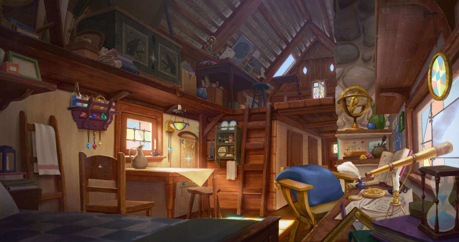 I specialize in visual development, world building, background painting, as well as any type of illustration work for animation and game industry! For people who might not be familiar with this industry, before any animation or game goes into production, the ‘look’ of the project has to be designed first, and that is where visual development artist/concept artist came in! I mostly focus on world building, set design, and key scene painting, but I also like to do layout drawing and character as well! I’ve been told that my strength lies in my uses of color and my ability to create a story-driven cinematic painting. Storytelling is everything when it comes to creating a painting for me, and I tried to capture that plus the mood and emotion I want to convey in all the paintings I create. I am also flexible when it comes to style, and I can paint in both rendered and a more graphic style!