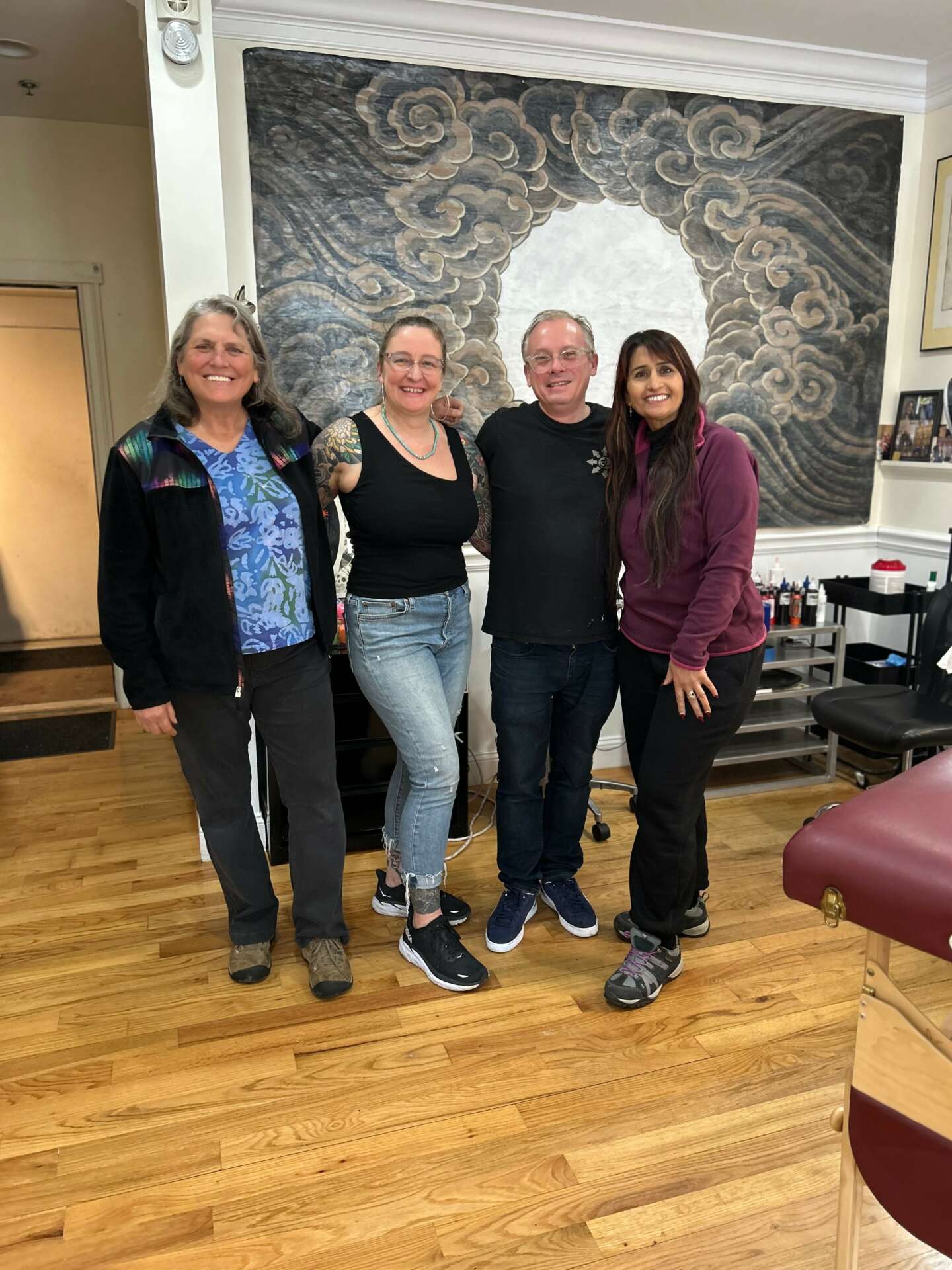 We are a family owned private tattoo studio in upstate New York. I started tattooing in 1995 in LA by going into biker tattoo shops with my drawings while getting turned down repeatedly. But I kept showing up and hanging out while soaking up as much as I could. I hung out on the boardwalk in Venice beach doing sharpie tatts. I felt the hunger for it and haven’t stopped since then. I pride myself in making sure each drawing is perfect and each tattoo fits well and flows with the body part so it doesn’t look like a sticker was slapped on. I love seeing tattoos evolve as we make progress. My wife runs the business end of things and speaks with our clients first and is very welcoming. Our clients always say how comfortable they feel, she contacts them after the appointment to make sure they’re feeling good and if they have any questions. We genuinely care about our clients. I like to work with our clients for design ideas and I explain what works, what doesn’t and why. I’m proud of my work and our studio. I’m proud our oldest is working in the studio and it makes us so happy when our younger daughters talk highly of our studio