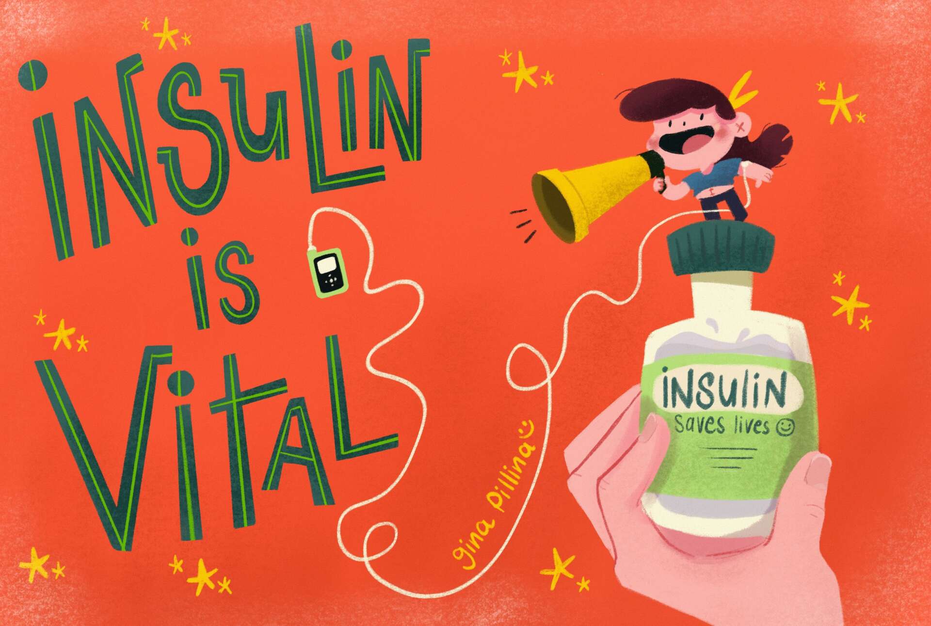 I am an illustrator who educates about type 1 diabetes through comic strips; depicting Gina Pillina as the main character. Gina Pillina is a happy and cheerful girl who wears a big hairbow, falls in love, likes to make jokes, loves drawing, and has diabetes. My illustrated stories are fun to read and are meant to entertain while learning about this chronic illness. Type 1 diabetes is not on the radar since only 10% of the whole diabetes population lives with it, therefore there are so many misunderstandings about it.