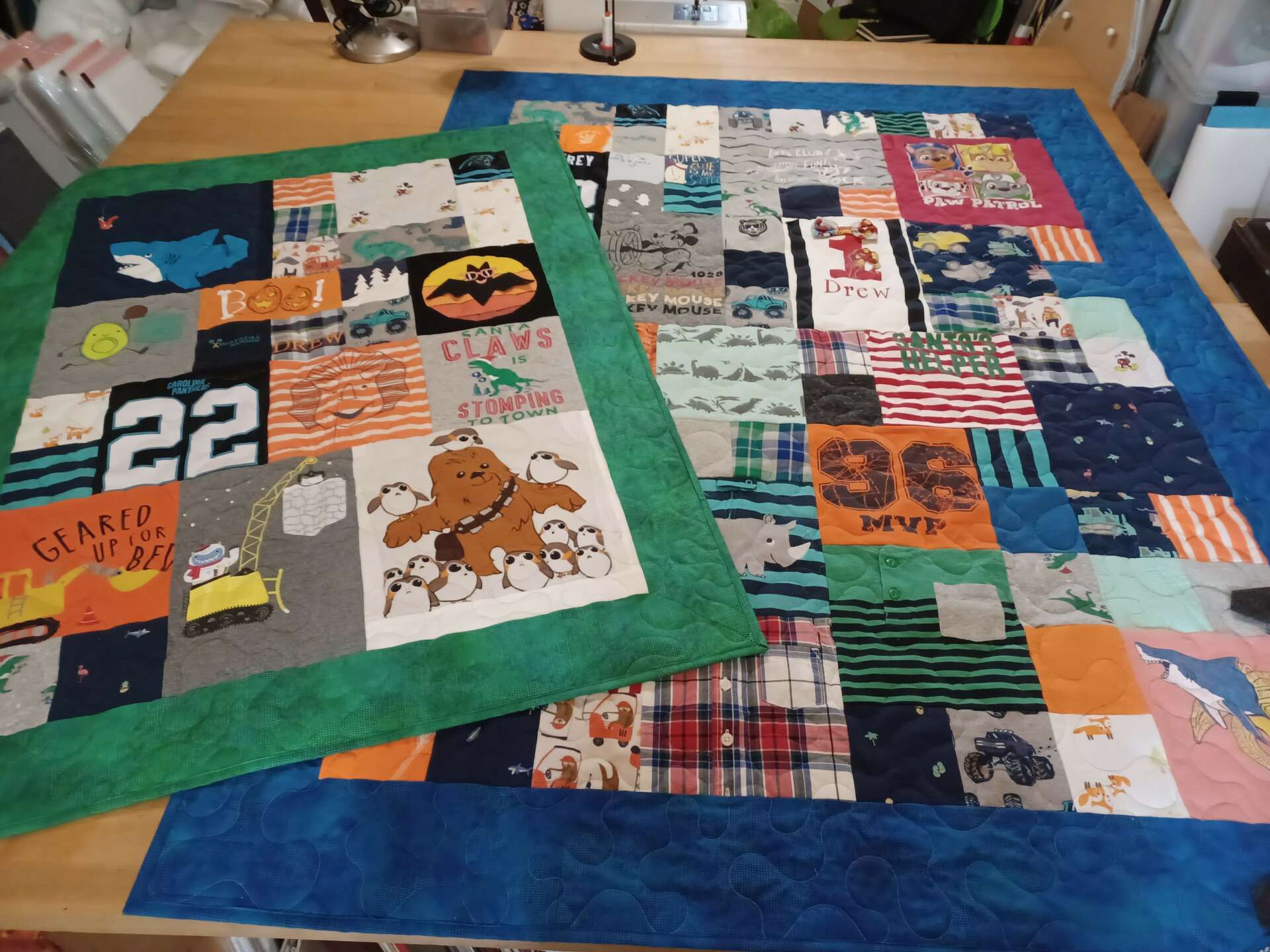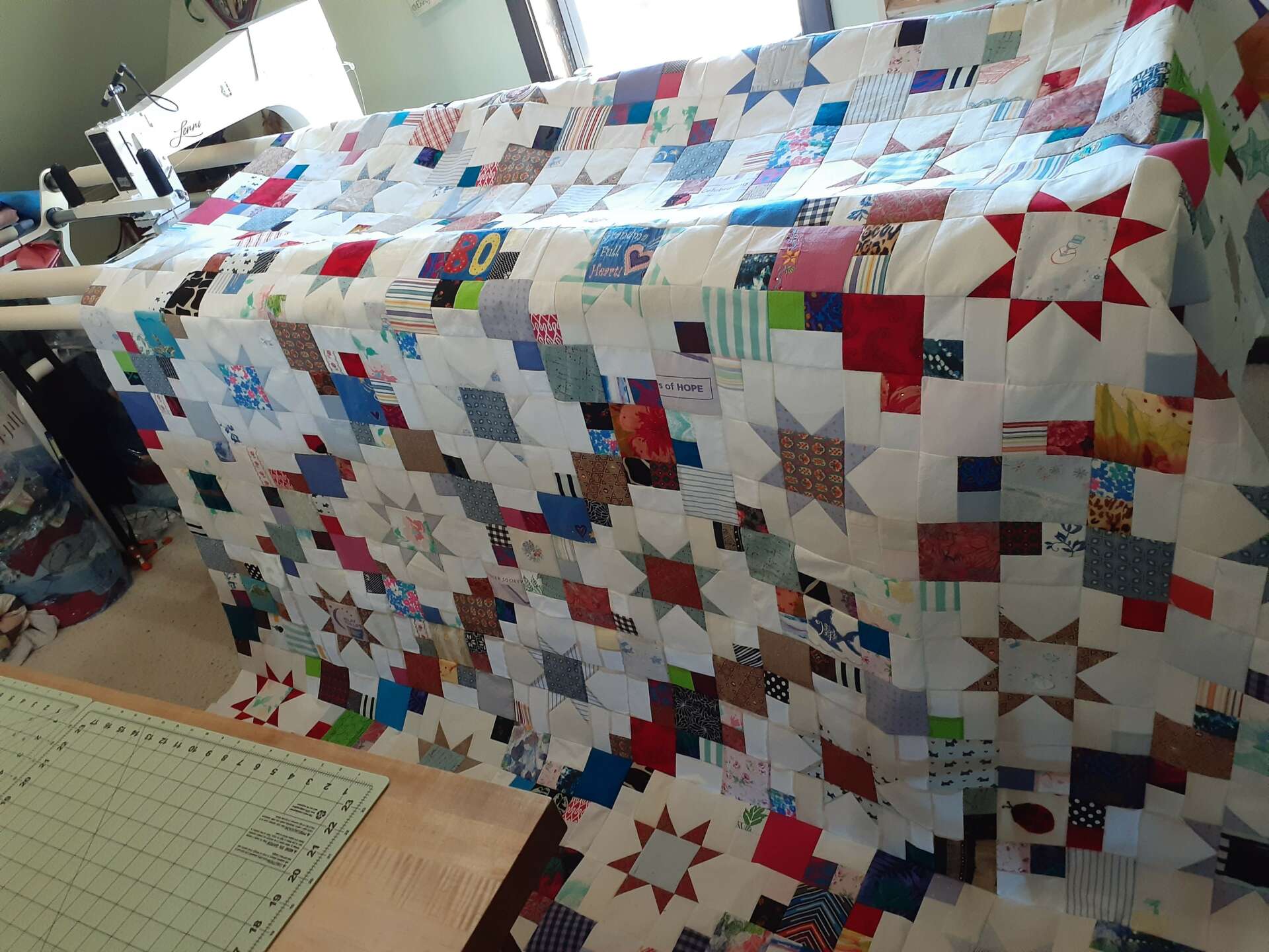 In my artist heart, I want to fill the world with soft, beautiful quilts. Just as every home should have books, every home should have quilts. In my day to day business, my mission is to have my customers finish the process with a quilt they love, and often during the process, I will say those words directly to my customer. Most of my customers are not quilters or even sewists, so my job is not only making a quilt for them, but to also educate and lead them through the process of having a quilt made. All of the quilts that I make from clothing for customers are highly personal and often represent years of a person’s life, and I want to best utilize what I am given to show and remember that person. Recently I made two small quilts for a mother whose three year old son had passed away, and some of our initial meeting was spent talking about him and his loves and the memories associated with the clothing we were discussing for the quilt. I am so often reminded that my work will become an heirloom quilt for a family, and the quilts I make are much more than the fabric from which they are composed. Quilts have always represented more than their sum parts, and I am grateful to be able to make the continuation of this artistic endeavor my daily practice and mission.