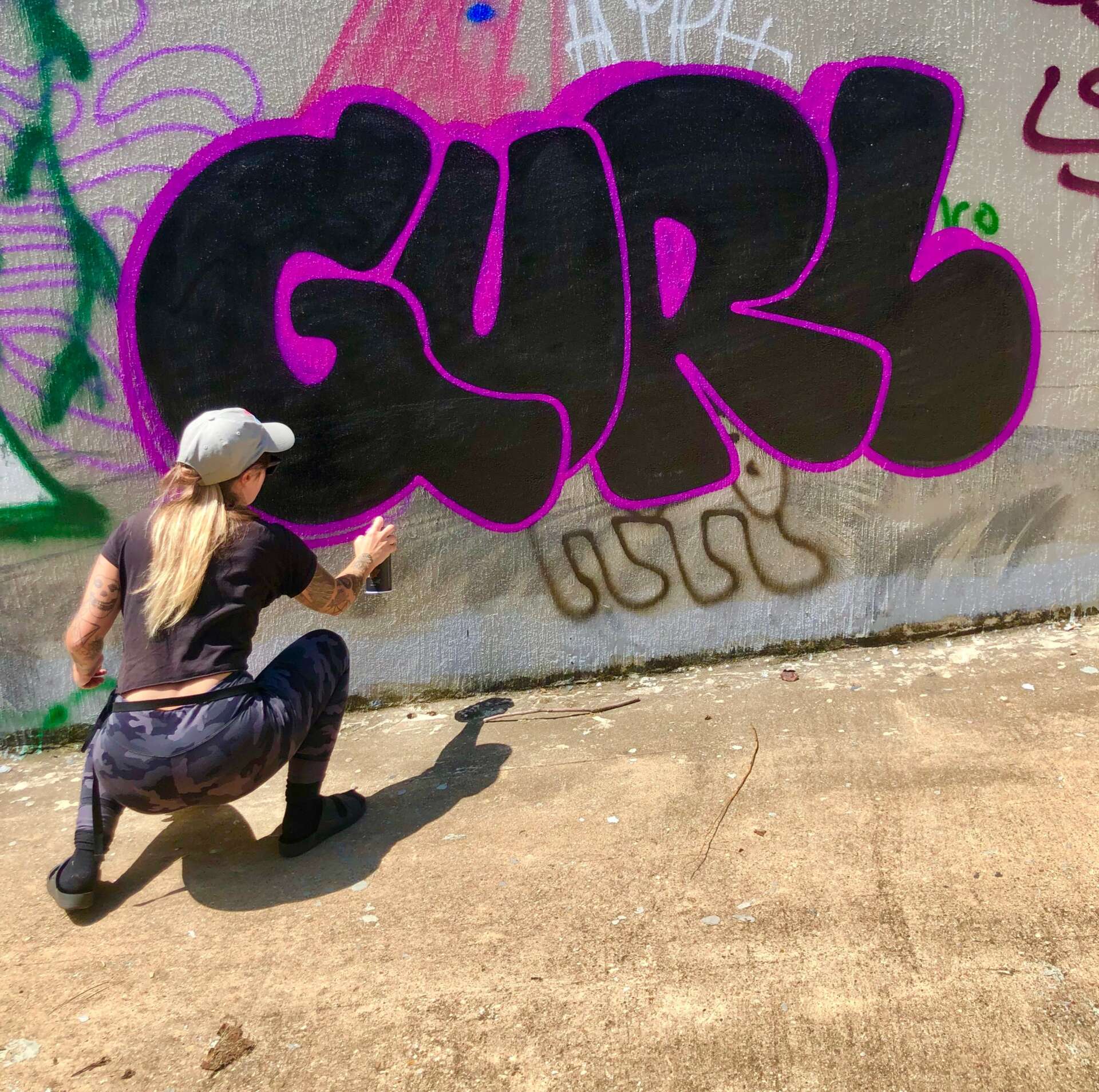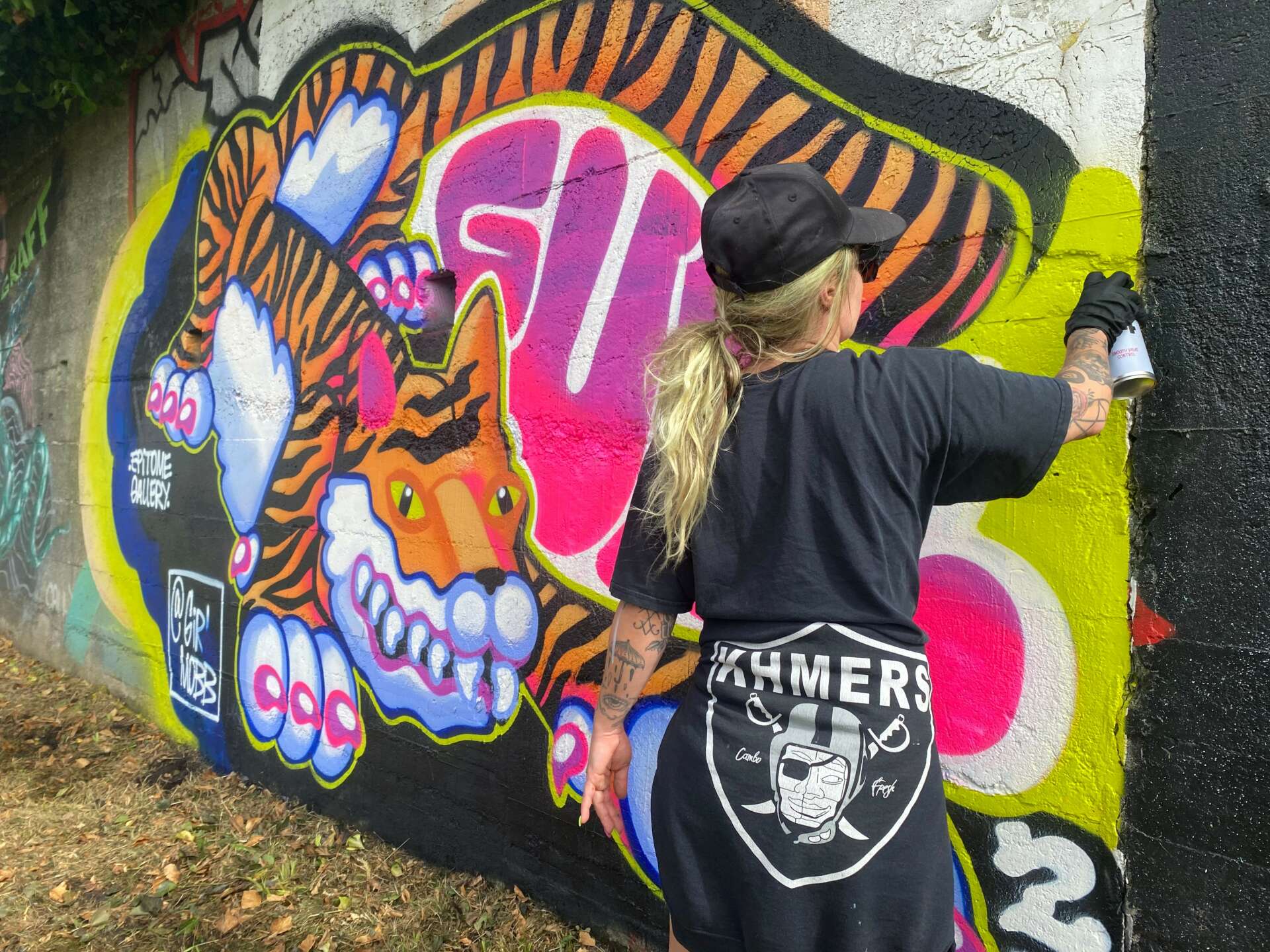 My most meaningful project was Graffiti Camp For Girls, a nonprofit spraypainting class for teens that me and a friend, Deirdre O’Shea, stated in 2016. Seeing a lack of public art works, murals, etc done by women on the streets I started teaching these spray painting classes for girls, non-binary, gender fluid, LGBTQ+ teens as a week long mentorship ending with a mural production done by my students, that they decided and collaborated on as a collective.