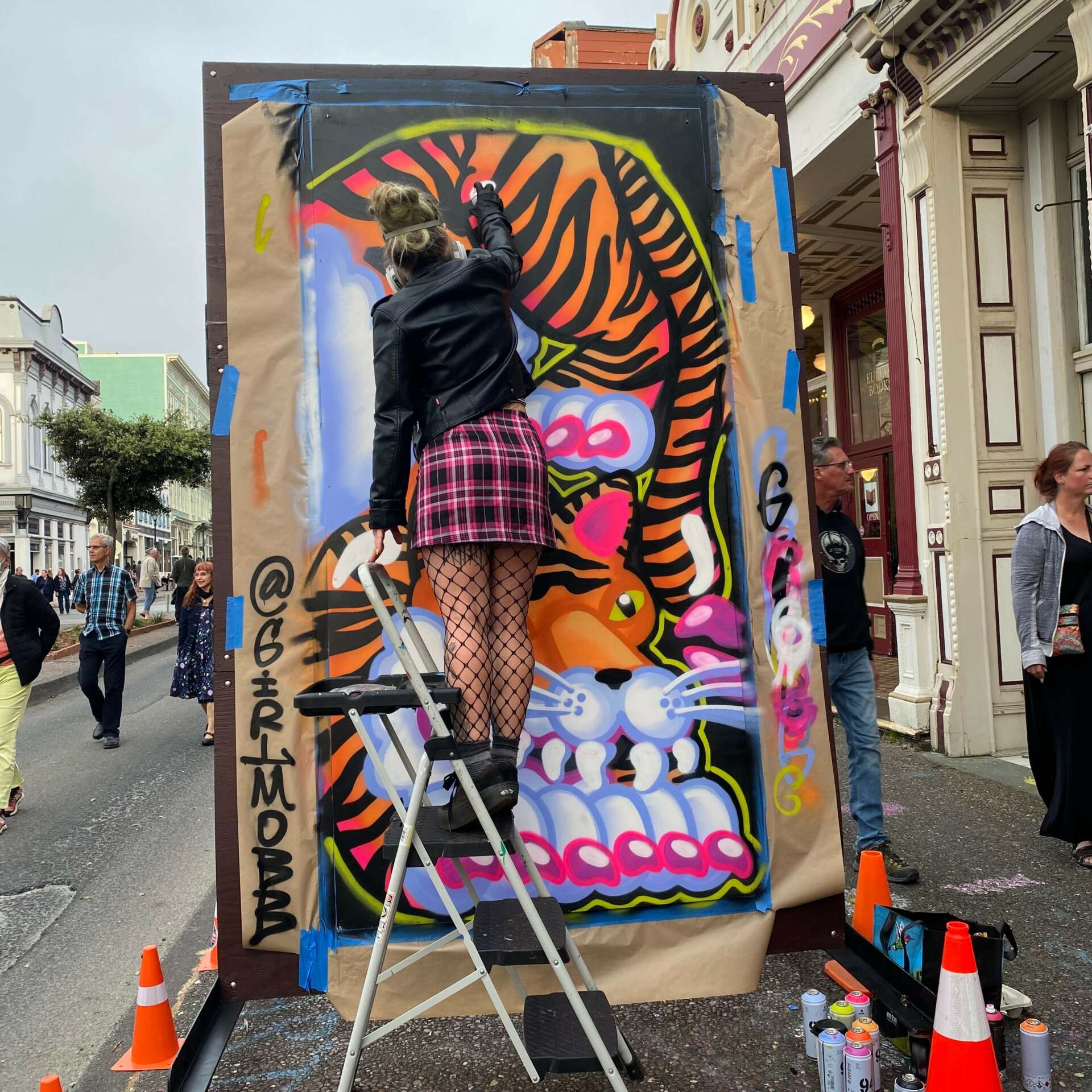 I started as a graffiti writer in Cincinnati, moved to Oakland in 2008. Girl Mobb, my artist name, comes from my inspiration to work with other women as a collective on several art projects with femme centered themes.