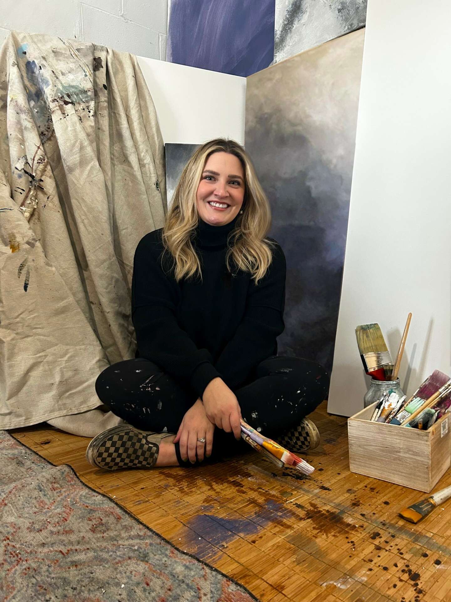 Painting really has my heart, it’s my favorite way to express my creativity. For me, creating art is just as much about the process as it is about the final piece. When I’m working on a painting commission I really enjoy building the layers and creating movement through my piece. I’m a dancer also, so I’m very inspired by shapes and movement across the canvas combined with the surreal and calming colors of nature. I often work with clients on large scale custom commissions as well as creating several collections each year which I sell on my website. I’m always so proud of my large scale canvases pieces, because starting with a big blank canvas can be really scary.