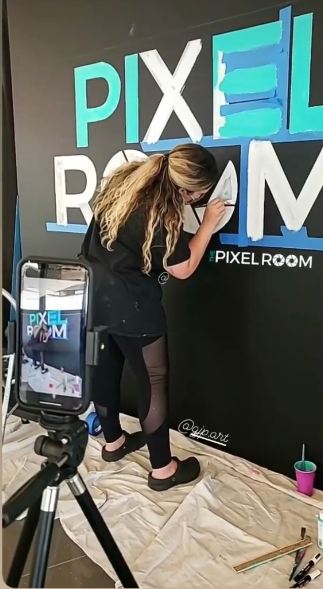 In addition to abstract canvas paintings, I also work in smaller scale paper pieces, murals of all shapes and sizes, and hand lettered signs. People always say to narrow your niche, but what I do works for me and I enjoy working in a wider range of the art community.