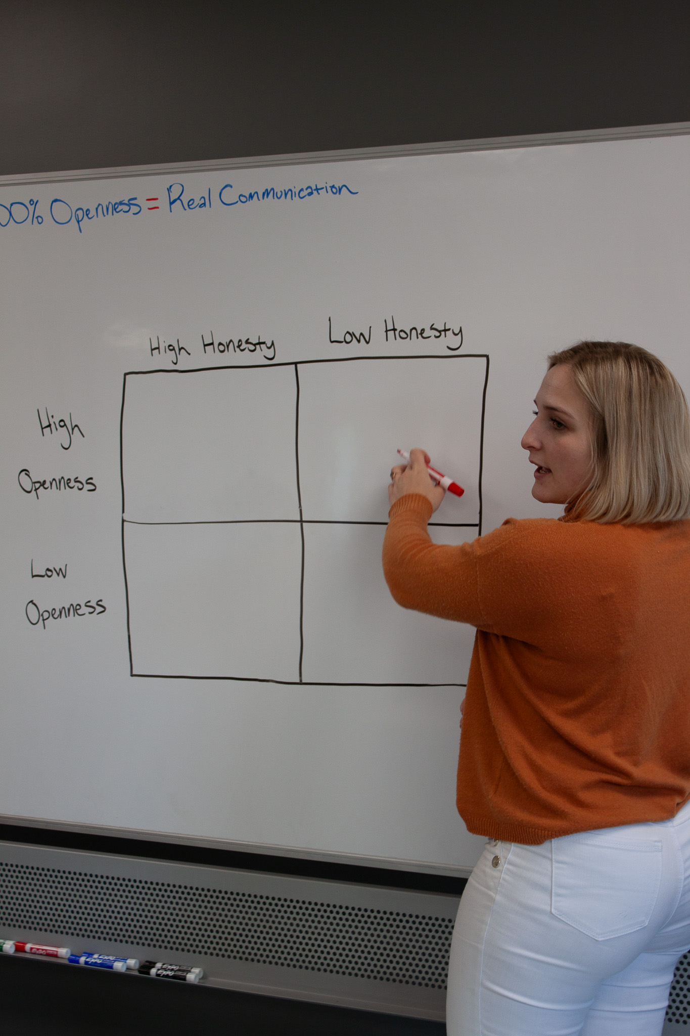 Communication must be comprised of two elements: open and honest. Honesty is being truly and freely yourself, speaking into what you want and how you feel. We’re pretty good at that, but what we struggle more with as humans is being open. Openness is listening without reservation, putting your needs and wants on pause for someone else. When that is the expectation within an organization, teams more more efficiently and effectively. They’re solving the real issues blocking progress.