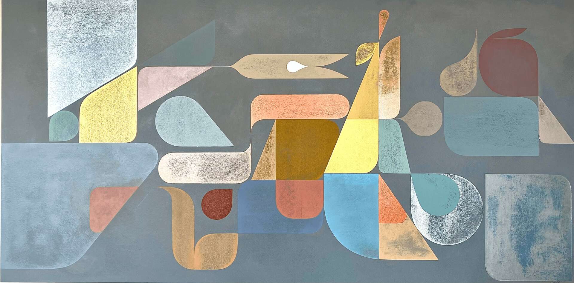 I draw inspiration from many sources, among them, typography, graphic design, industrial design, the human form, fashion, landscape, religious iconography and architecture…basically anything and everything visual goes into my toolbox, and then I attempt to distill forms down to their most elemental and elegant, without any particular nod to narrative. I tend to think that loading your work with clear symbols or anything clearly recognizabe whether representational, or symbolically is an attempt to directly communicate or direct a viewer’s experience, which I have nothing against. I have and will use representational elements again, but at this point I’m interested in a sort of, visual meditation more than visual communication, if that makes any sense…my goal is to move viewers to experience something mystical, or spiritual without any specifically loaded imagery. I know it’s an impossible thing, to create imagery that is in no way derivative, and people always find things that are relatable to them, or suggestive of recognizable forms, but that’s not my intention with my current body of work. Usually as a painting is reaching a resolution of some sort, a concept will come to me, as if it’s communicating something back to me that has emerged throughout the process, and sometimes a word, or a sentence will appear, which often becomes the title. In some rarer cases I have a rough thought of a title in mind before I begin. Sometimes a shape will appear in my mind, and I’ll know that I need to do something with it, and I often discover the reason along the way.