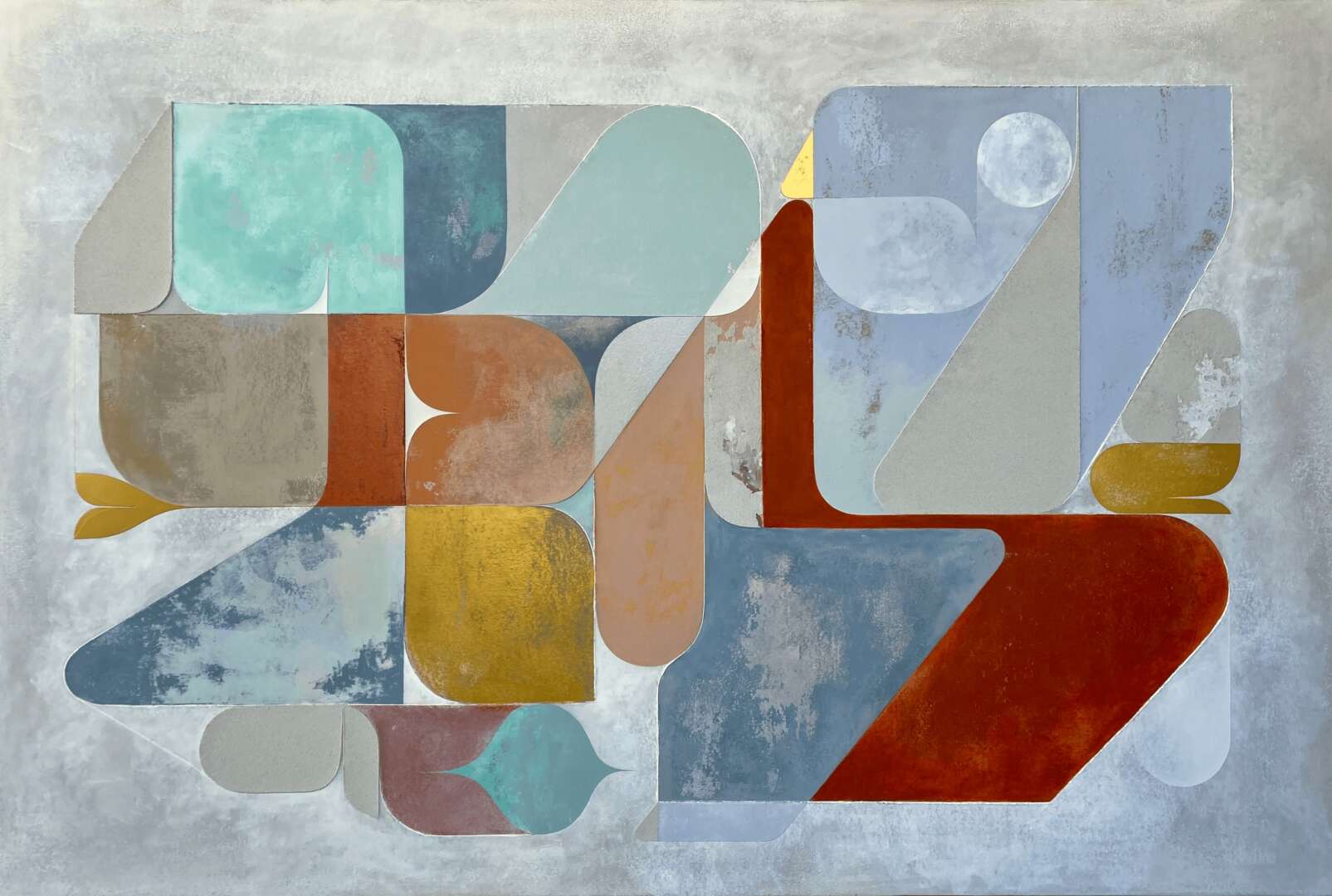 After Covid, and a subsequent breakup, which turned my world completely upside down, I was heartbroken, and lost. Somehow I heard a little voice nudging me to recreate myself and start creating work what I wanted to create, and give it the serious commitment that it deserved. I went into the studio (a 2 car garage) and I got to work. What began to emerge were what I believe were sort of cathartic meditations on canvas, with the purpose of helping me process my broken heart and re-order my chaotic mind. At the same time, I suppose I was attempting to carve out a new career path with no clear roadmap, or way forward. All I knew was that I couldn’t stay idle. I had to get to work, and so I did.