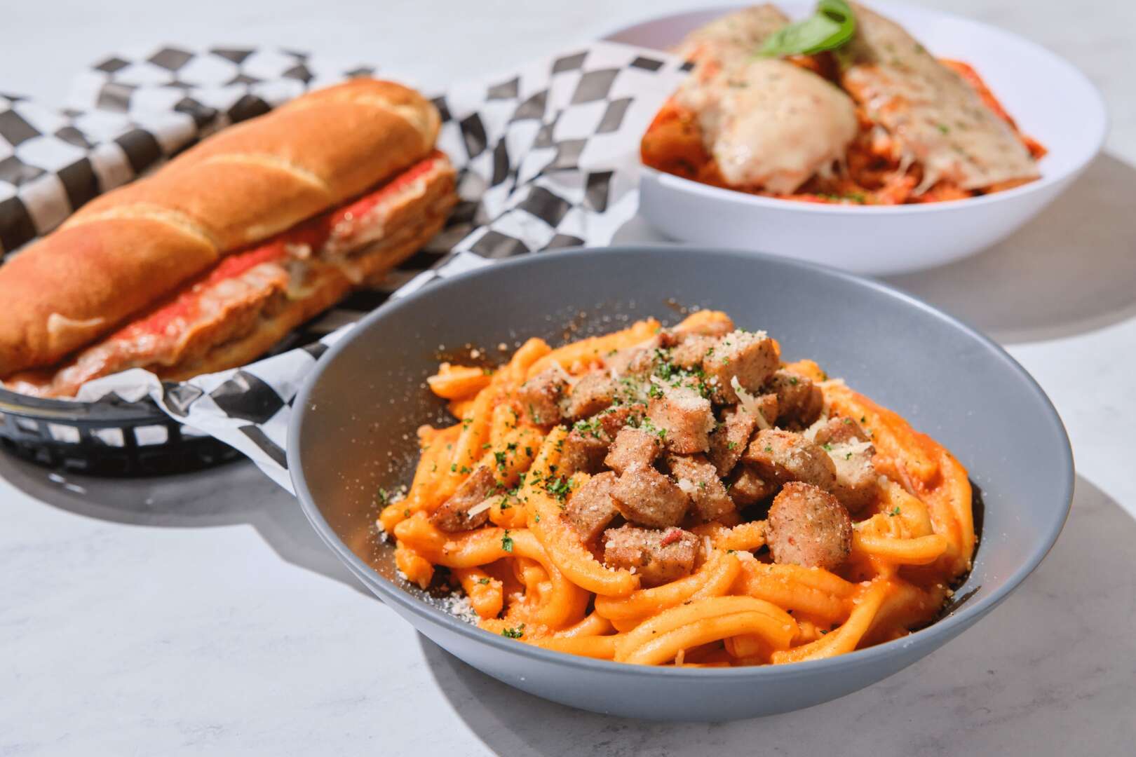 Pasta di Guy is a fast casual Italian themed eatery. We specialize in made from scratch pasta dishes, each made to order using only the freshest ingredients. The menu includes fresh pasta, sauces, salads, sandwiches, and desserts. We offer a “create your own” pasta bowl, with a wide variety of sauces and toppings so the pastaibilities are endless!