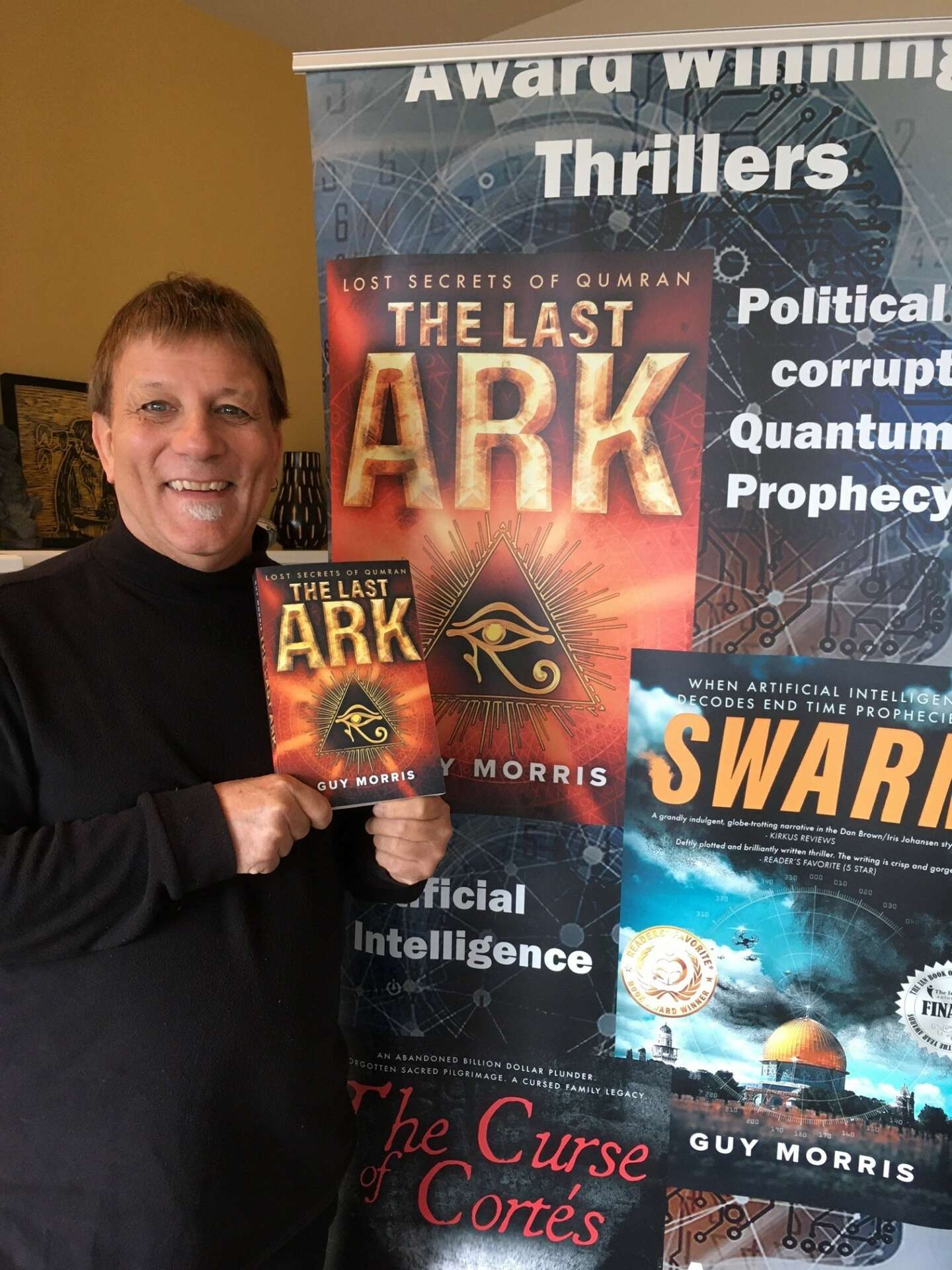 Every one of my thrillers is deeply rooted on a true current event, history, technology, politics or religion. Most often, I discover the inspiring premise during research. While characters and plots are fictional, the world in which they exist is largely factual. Art does imitate life. For example, my historical thriller ‘The Curse of Cortes’ came from researching Henry Morgan’s raid on Panama City in 1672. With a 30-ton, billion-dollar plunder, Henry Morgan cheated his own men and disappeared with five hundred slaves on three ships. Months later, Morgan returned to Jamaica with an empty ship and a starving crew. After King Charles II knighted Morgan and sent him back to Jamaica, he fell into a drunken, depressed debauchery and burned his log books to keep the world from learning the truth. I spent over a decade trying to unravel what happened to 30 tons of plunder, three ships and hundreds of souls? More importantly, I wondered what had terrorize Morgan into giving up a billion-dollar plunder? The research led me to the Inquisition and the Mayan creation myth.