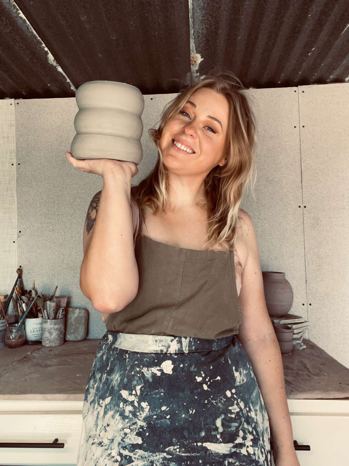 Growing up, I never thought my art could be a career. I was multi talented, and worked in 2d design, painting, collage, digital art as well as sculpture, sewing, and general crafts. I am a creative at heart, but never thought that being creative could make me a decent living. I used pottery as a way to get out of my career job in the culinary industry, center myself as I centered the clay and relax away from it all. I bought a wheel at a school auction for $90 and taught myself through youtube videos and endless trial and error. After leaving my career job, I floundered with what I wanted to do with my life, but pottery was always there for me and I got better and better with my work. I eventually got some work finished that I was willing to share with others and sold out of my first ever instagram drop. My husband was already pursuing his passion in the creative field and encouraged me to lean into my pottery. I had been working a part time job to get by and save some money, and we ended up taking a chance and buying a kiln with the last of our savings so that I could finish my own work and sell it. We did weekend after weekend of farmers markets and artisan markets until we built a following and were able to transfer our work online.