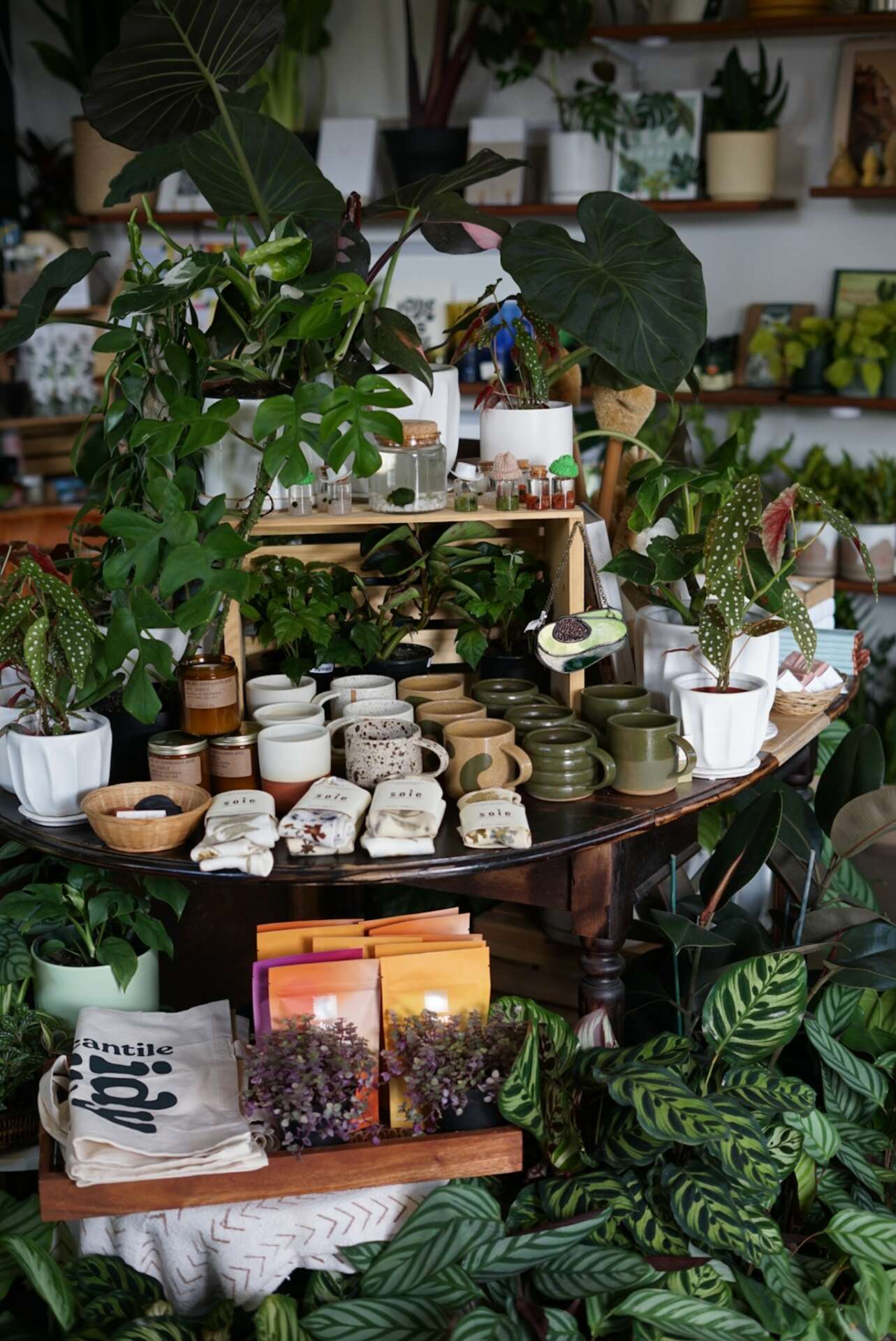 Our shop has an assortment of plants, plant care products, mugs, prints, earrings, stained glass, and greeting cards, which has translated it into being a space where people come for gifts! It truly is an honor to function as the hub we have become, and I think what sets us apart is not only the education we offer around plants, but the diversity of our offerings.