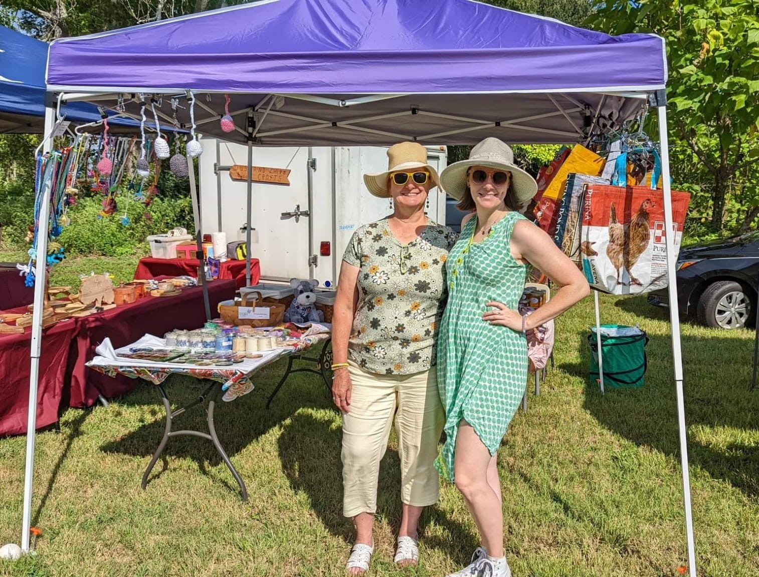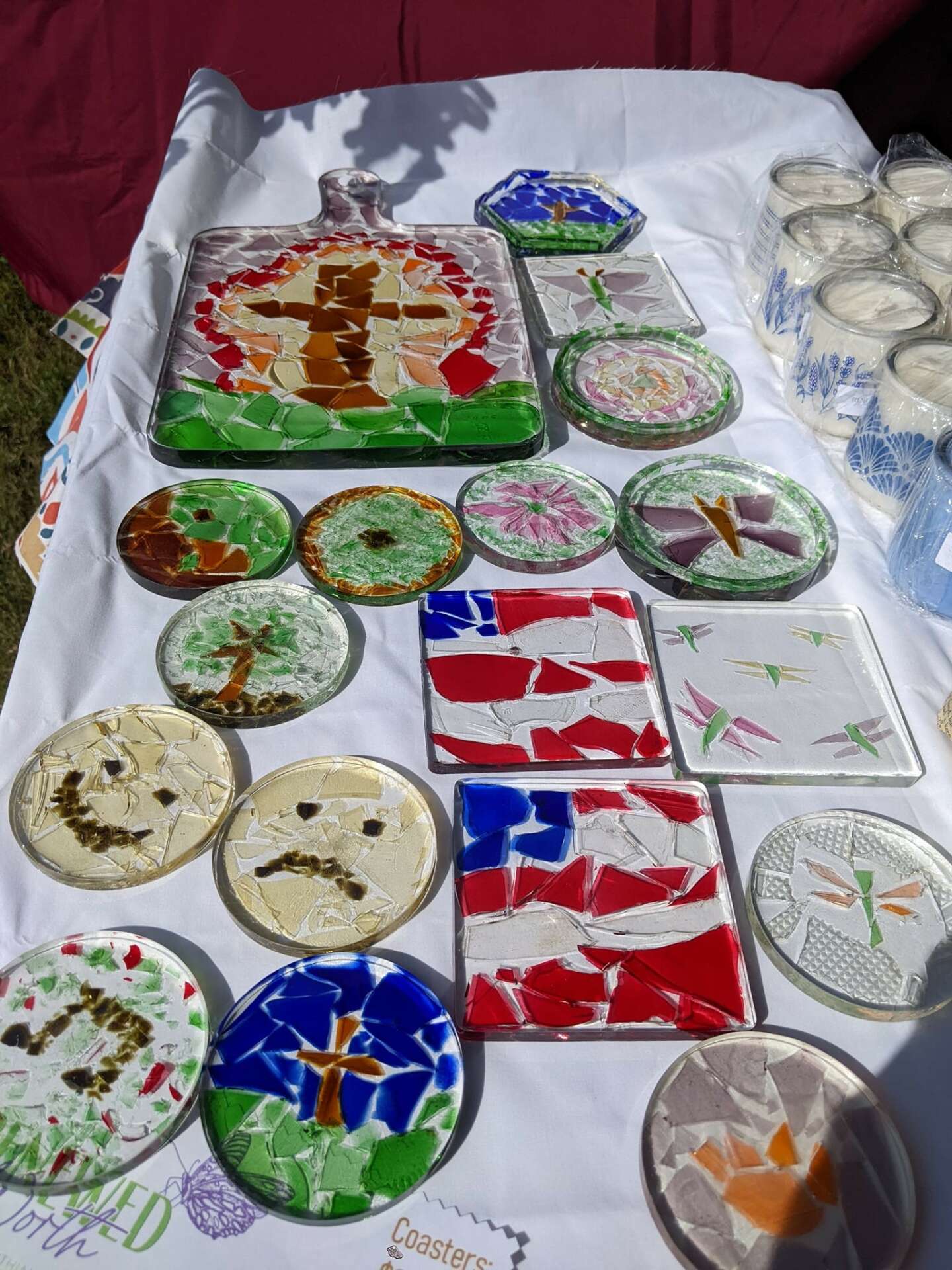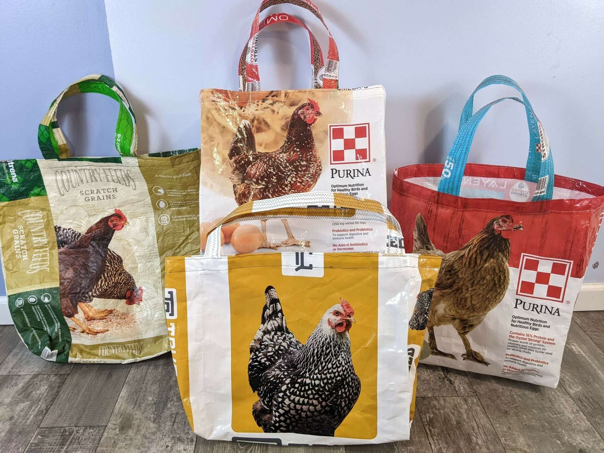 We sell a variety of things but everything is repurposed and helps you keep the planet a little bit cleaner. A lot of places don’t recycle glass and although glass is a more natural product than others, it is unknown how long exactly it takes to decompose. That is why we save glass jars and broken glass that we find laying around. We make candles in the jars to give them another life and we turn the broken glass into art via resin coasters. We also save the landfills from a lot of plastic waste. We turn feed sacks into tote bags! These bags are extemely durable because the plastic was made to hold 25-40lbs of feed. My mom(the mastermind behind these) knows exactly how to clean them and sew them to make them not only strong but super cute. Most of them have cute animals on the print like chickens, horses, dogs, and even catfish. These are our best sellers.
