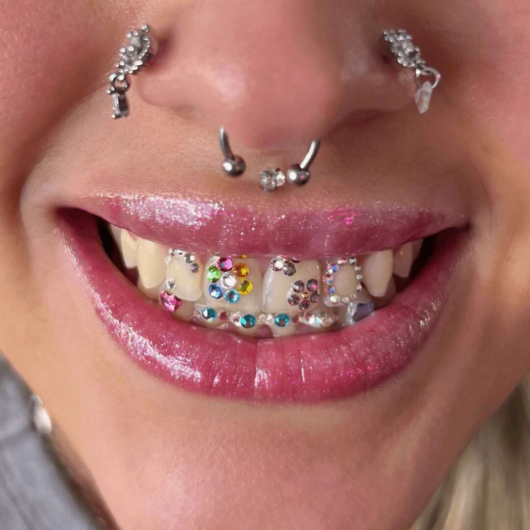 In addition to waxing, I have recently delved into the world of tooth jewelry. It is SO much fun to highlight someone’s individuality using sparkly little crystals, whether it’s a simple or complex design. I love every part of the process that goes into creating custom tooth gem styles. One of my many goals is to become a renowned tooth gem artist one day and create bold gem styles for unique individuals.