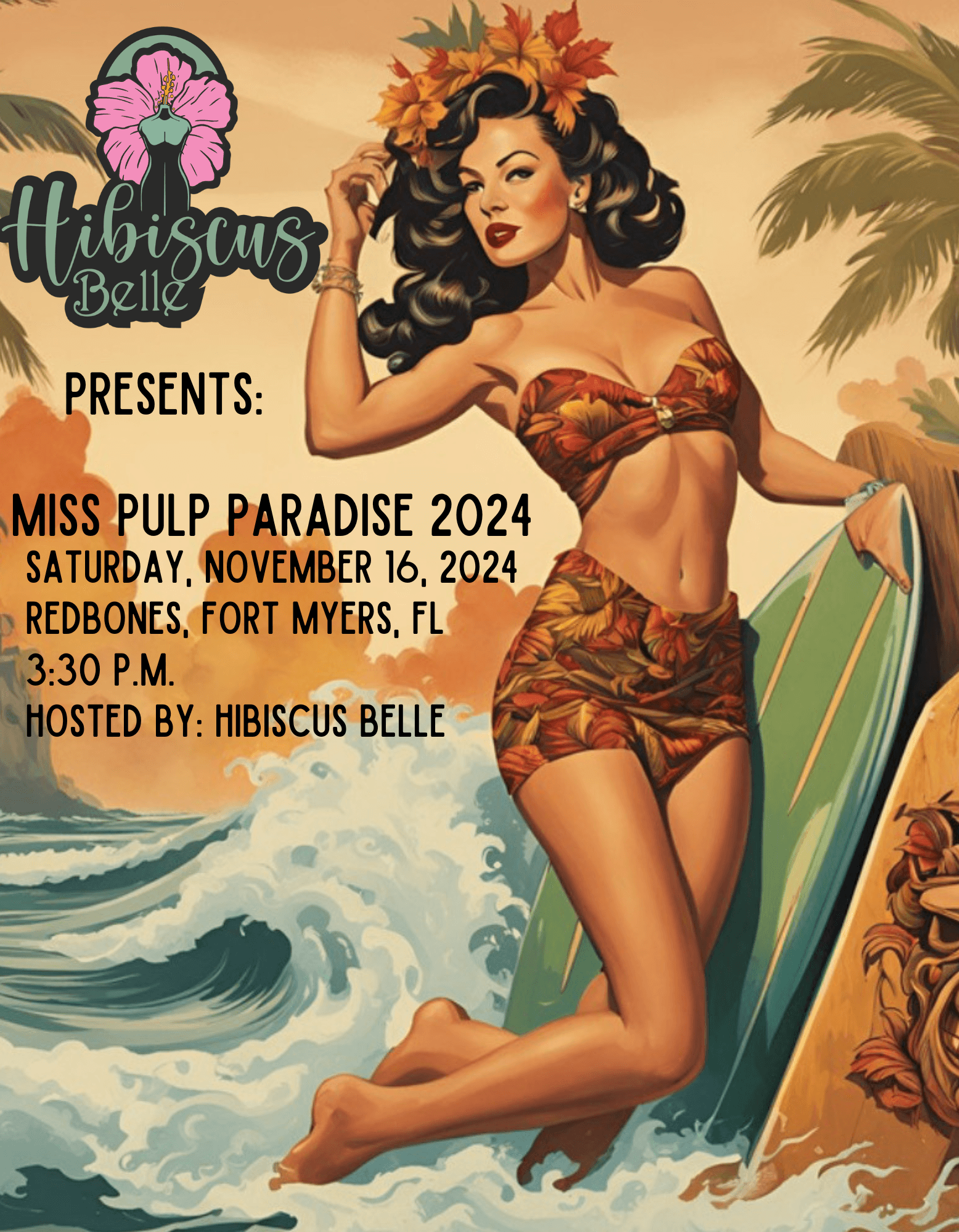 “Into The Graves Productions has really changed our focus from putting punk events on in southwest Florida, and have expanded our brand into embracing other genres such as surf music, rockabilly, and tiki style events.” says Heather Graves, owner of Into The Graves Productions and head event coordinator for the company. “We are now putting together events that have a tropical style to them, including fancy drinks that look as good as they taste, vendor market that goes with the events theme, audience participation in creating a vibe by wearing interesting fashion, pinup contests with crowns, sashes, prizes, and surfabilly music. People travel in from all over the country and there is a sense of family that tends to form at these type of events.” says Heather. If this sounds like something you would be interested in, then make sure you go to “Pulp Paradise: A Tropical Surf Music Event” in November 2025 at Redbones Bar and Grill in Ft.Myers, FL, brought to you by Into The Graves Productions.