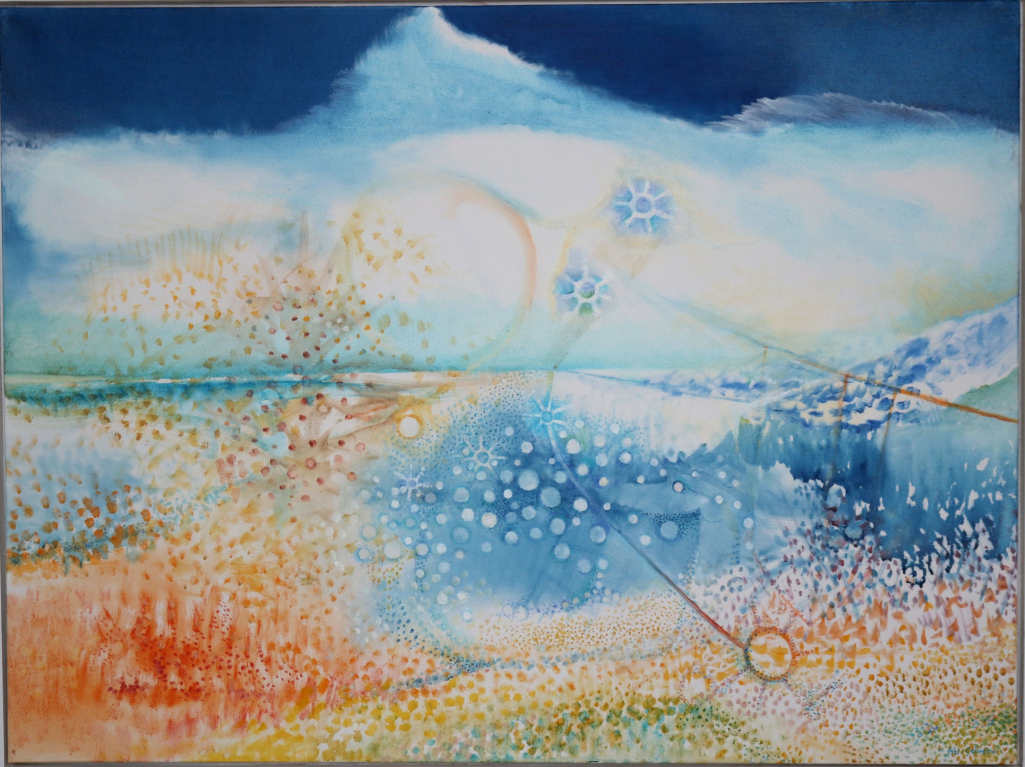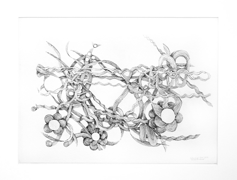 After my Paris exhibition where I was offered a five-year contract to exclusively produce squid ink drawings, I decided to rather go back to my beach village in Greece where the population was a living example of a continuation of Greek mythology, philosophy, poetry, and drama. That was nourishing background for my personal growth and learning. After my classical academy training in Vienna, which highlighted the renaissance my exposure to modern art at many European museum and exhibitions of other artists I was inspired by Kandinsky, Paul Klee, Wols, Cezanne compositions. A liberating experience was exposure to American modern art. So, from the library of old and new art I developed my own artistic language and personal style.