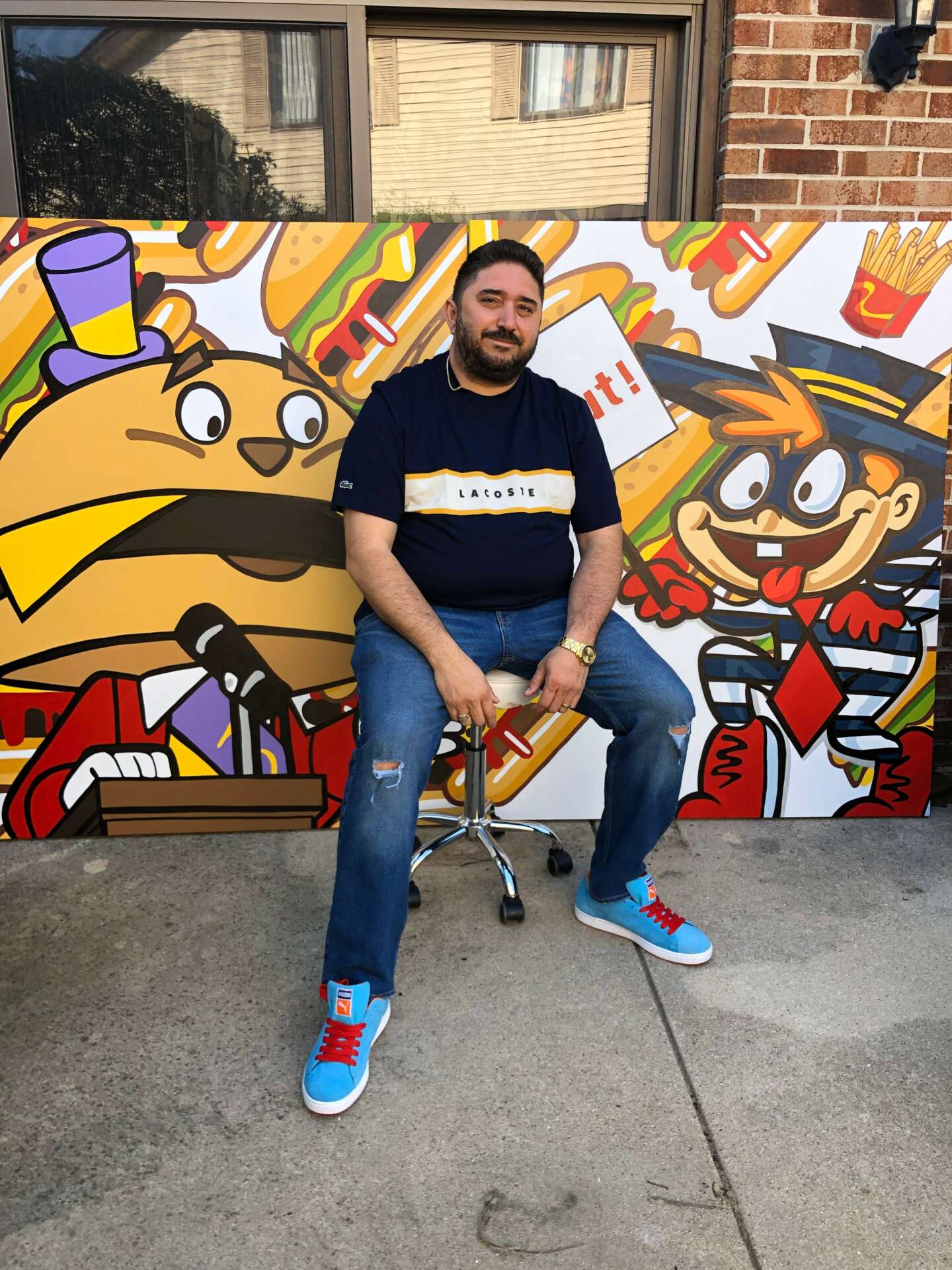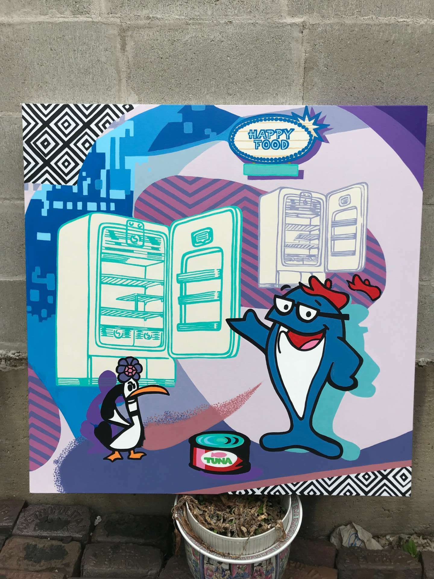 One of my paintings series is a called “Happy Food,” which is a playful jab at the fast-food industry and its impact on our health. The mascot’s sidekick represents me as the underdog, often overlooked in the stories I tell through my art.