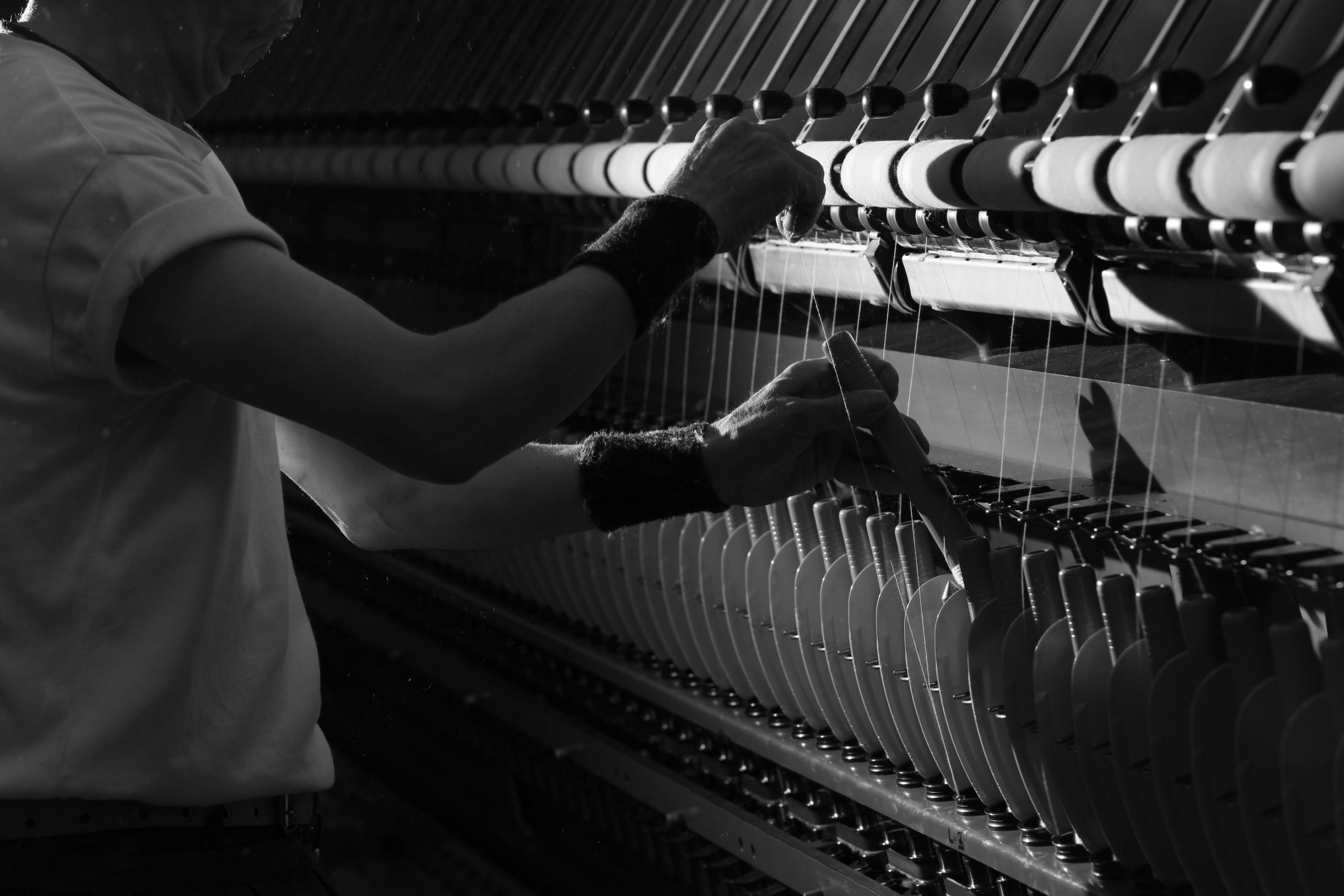 Our loopwheel fleece fabric is knitted slowly and gently using vintage loopwheel machines. This allows the yarn to retain its natural softness and texture, resulting in a fabric that feels plush, smooth, and rich to the touch.
