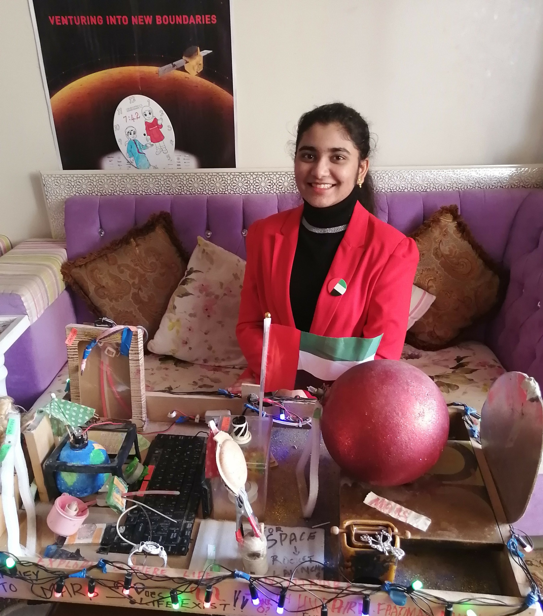 One such moment is my first step into the world of innovation and R&D. Back when I was in school and UAE had set out the creation of Amal, the Emirates Mars Mission, in 2014, I recall creating a model depicting how Mars might appear when the UAE entered its orbit, along with the potential for life on the planet. It was some parts of a microchip, a few lights, a vivid image of how Mars would look and a lot of hope and imagination. From that day, I never looked back in the field of innovation. I went on to create Disaster Display, an Acougizer, a neonatal Jaundice kit and so much more. That spark and zeal for research and design has never trickled down.