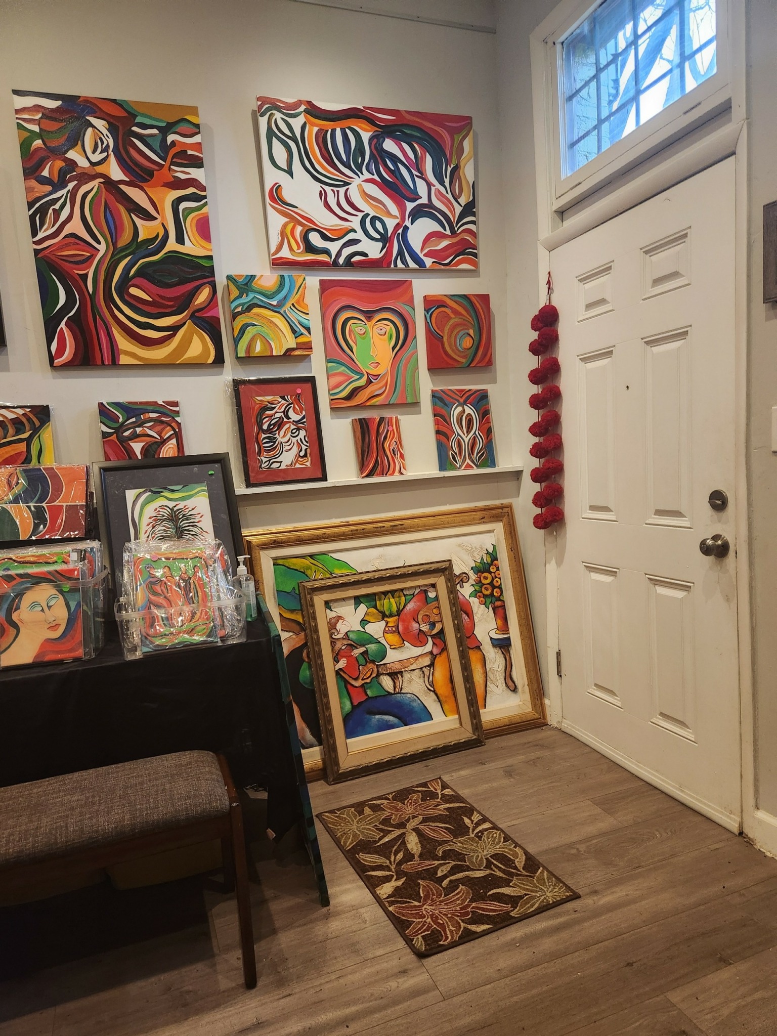 I found myself craving a space that was separate and could contain as much work as I could hang for show. Just outside my house was this small building that I used for a former business, tools, etc. Most people saw it as a storage space, nothing special. But every time I passed it, I imagined what it *could* be—a studio that housed my finished works.
