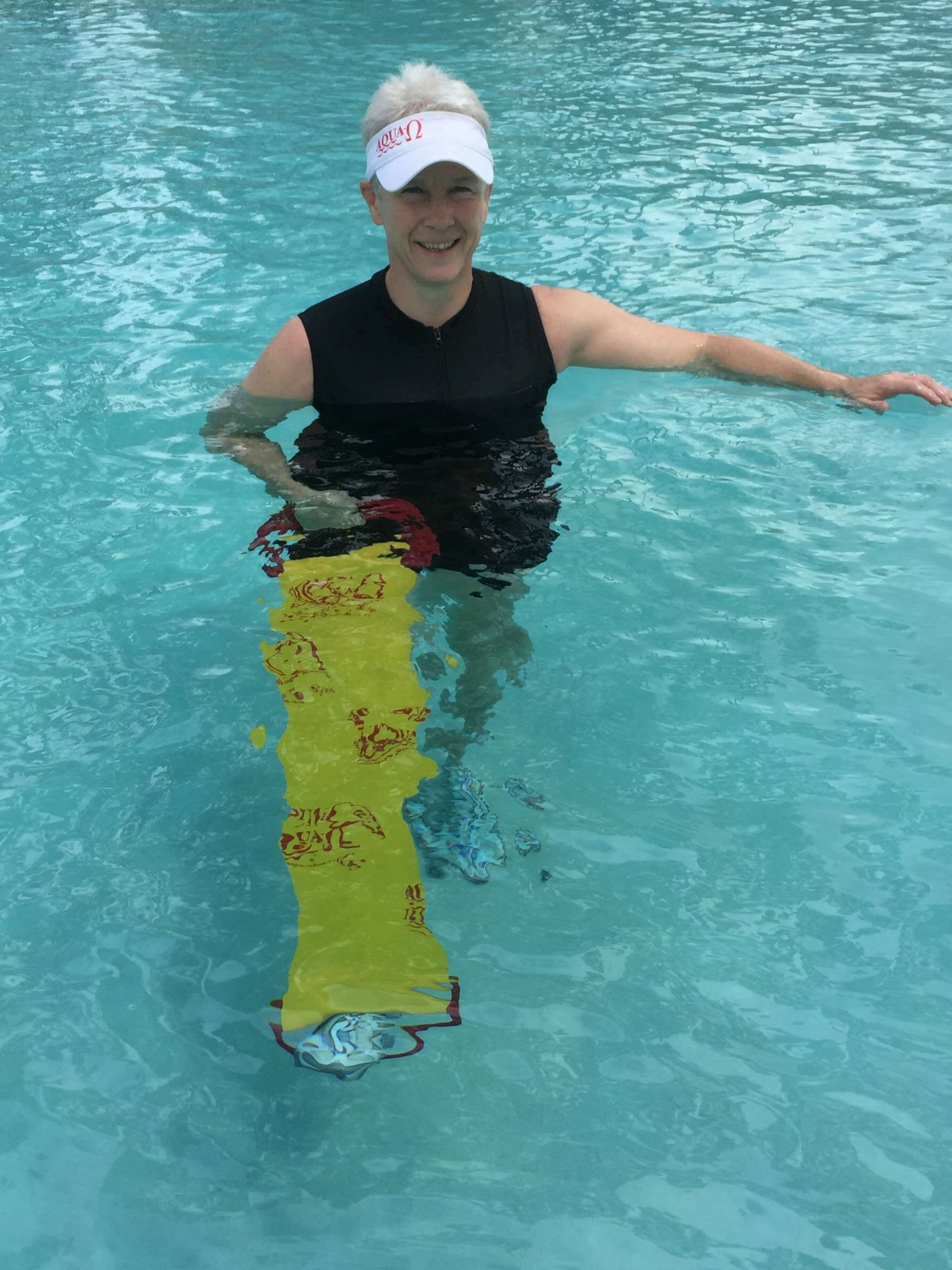 As a physical therapist owning my own practice, my husband and I were doing pretty well. I was working with my clients, at times teaching at a local college for the physical therapy assistant program, and I was teaching water exercise classes at the local community college. Life was good. But there was always a feeling of wanting to do more, reach more people with the message to keep healthy, to stay active, and to exercise. And that feeling was strongest during the water exercise classes at the community college, where the general population would come in to exercise. Many of them were part of the aging population, because the specific properties of water helped with the exercises and staying injury free. I felt there should be a way to make that available to everyone, without the boring repetition of just swimming laps, and without it costing an arm and a leg to get all sorts of equipment. I wanted one simple piece of equipment that would be easy to use, that could be used for any body part, small to pack along, affordable, fun, durable, and could serve any level of exercise and ability. Yeah, I wanted the impossible. And for years that is what I thought it was; impossible.