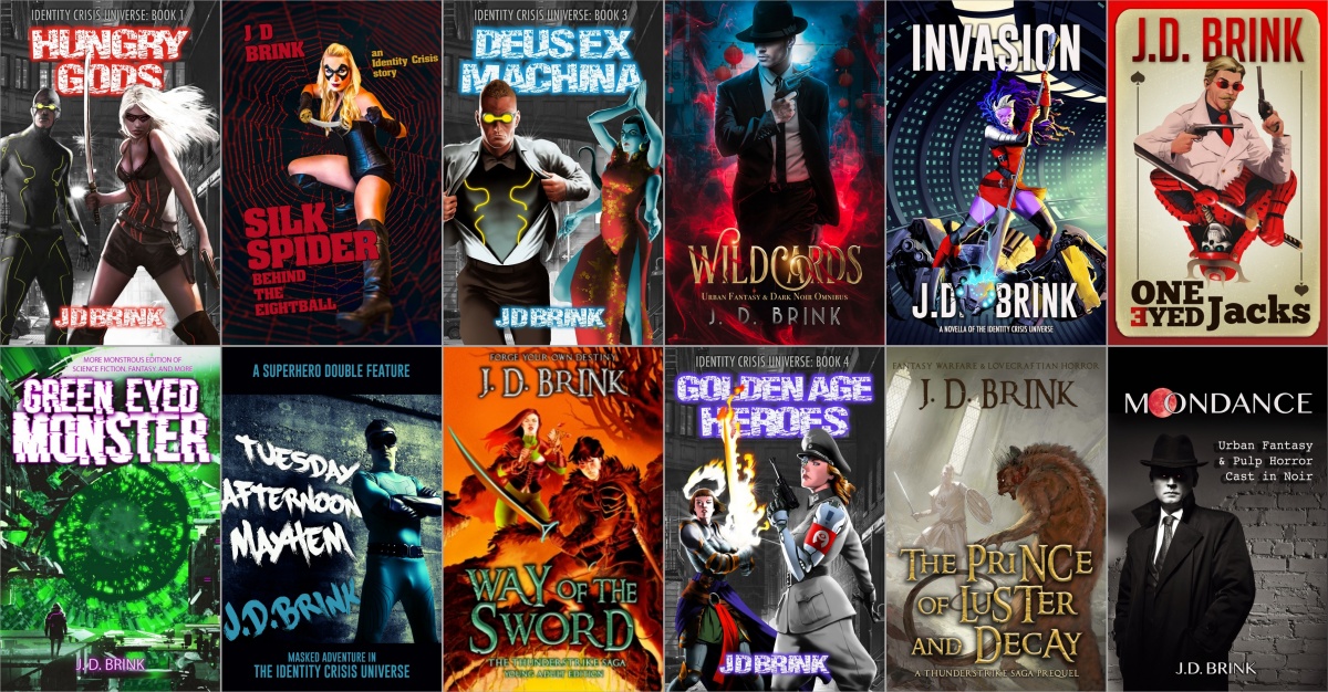 My written work is generally multiple genres blended together. My sword-swinging fantasy tackles the grittier side of coming-of-age, misfit saviors, and glory versus horrors of war. My superheroes for grownups series features a universe of characters, mixing Marvel movies with zombies, James Bond, World War Two, and more. My dark fantasy ranges from vampires, witches, and werewolves to futuristic private eyes and murderous mobsters. So far my science fiction has been mostly short stories, but I have multiple novel series in mind for space opera, void-faring buccaneers, cyberpunk, and galactic military espionage.