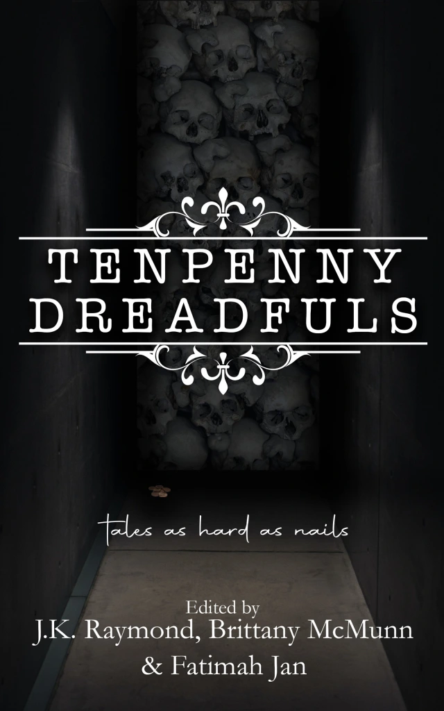 The title is a hybrid of a conversation I had with my father when I was ten years old and a mid-to late Victorian era publication that catered to the masses. The name of Victorian era publication was Penny Dreadfuls, which were low-cost publications that catered to an ever-increasing number of people capable of reading. Literacy among the masses was on the rise and with the ability to produce massive amounts of low-cost sensational publications featuring titles like “Barney the Vampire.” Penny Dreadfuls offered an accessible form of escapism to the lower-class people of Britain and they gobbled it up like fresh episodes of Supernatural. I always found the title of the lower-class rag titillating and the vision of what I wanted to achieve with Tenpenny kept lining up with a modern-day similar vision. Then my brain did what it always does without my permission. It started rifling through my brain files, linking anything and everything that could fall under the umbrella of Penny Dreadfuls. It’s an ADHD quality that throws me off course more often than not, but occasionally I’ll stumble across a hidden gem in the ransacked files of my brain. This time the gem was a conversation I participated in on an innocuous day in summer when I was around ten years old that matched the vague search criteria my brain approved for its unsanctioned mission. And for once I found myself staring at something beautiful and useful. A memory of my father asking me for a handful of tenpenny nails. We had at least a dozen rusted coffee cans filled with nails of various sizes strewn here there and everywhere in my dad’s garage. Having never heard the nail size before or it’s unusual name I asked what length he was looking for and he said, “like ten pennies stacked together.” I’ll never know why that conversation stuck, but it did. So, with the memory in hand, it didn’t take me long to find the title for my horror anthology. Tenpenny Dreadfuls, Tails as Hard as Nails. It was perfect.