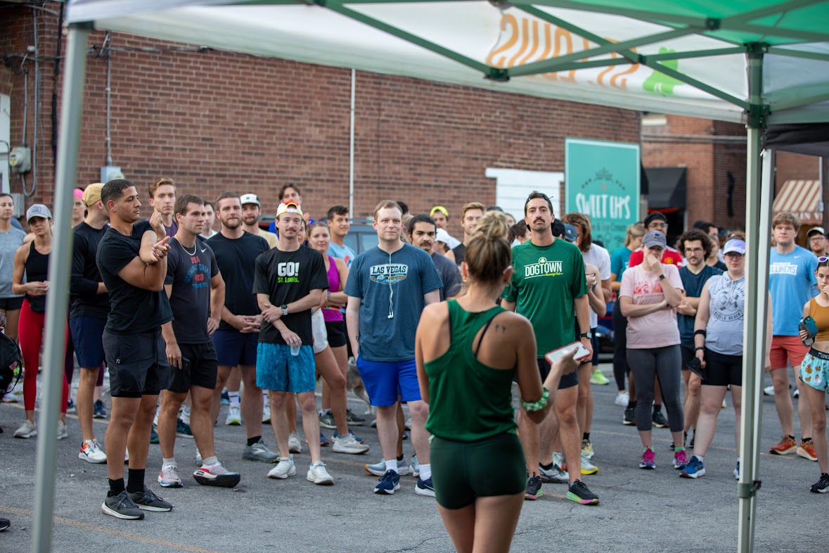 What’s wonderful about the local St. Louis running community is every group or training team has their own flair, yet the reason we run remains the same, and so with that comes a really tight-knit, supportive community. You’ll often see runners from Dogtown Running Club also frequenting one or two of the many other groups to choose from around the city. I think what makes our club uniquely ‘Dogtown’ is our members desire to be engrained in the community. Our culture has developed into one that uplifts new sub-groups of interest, which has been a haven for those looking to continue to foster meaningful connections through their shared interests. Things like book club, pickleball, BRICK (biking and running in combination), trivia nights, and a hiking group,