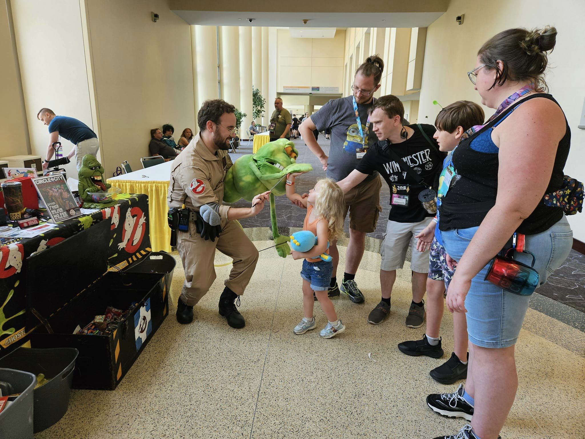 One of my earliest events with the group was Indy Pop Con 2016. While there, I helped run a charity raffle by doing a play “Psychic Test” much like the one Bill Murray performed at the beginning of the first Ghostbusters movie (don’t worry, we weren’t shocking people). I was immediately hooked on utilizing the fun of Ghostbusters to do good. We raised a few hundred dollars that weekend for Child Advocates and were invited to their Superhero Walk as a result. I was immediately addicted to the feeling giving back gave me.