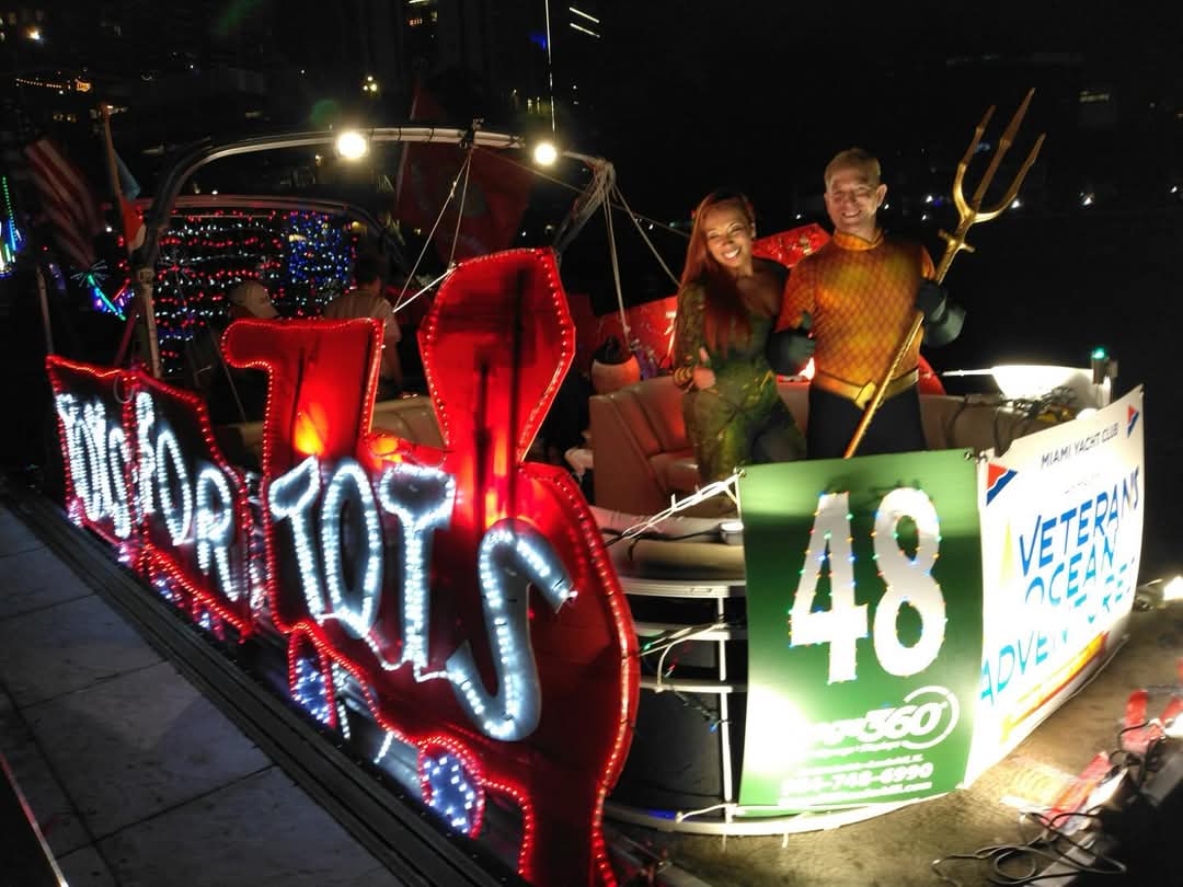 Aquaman & Mera in the Toys for Tots boat – Seminole Hard Rock Winterfest Boat Parade December 2024 – Fort Lauderdale, Florida