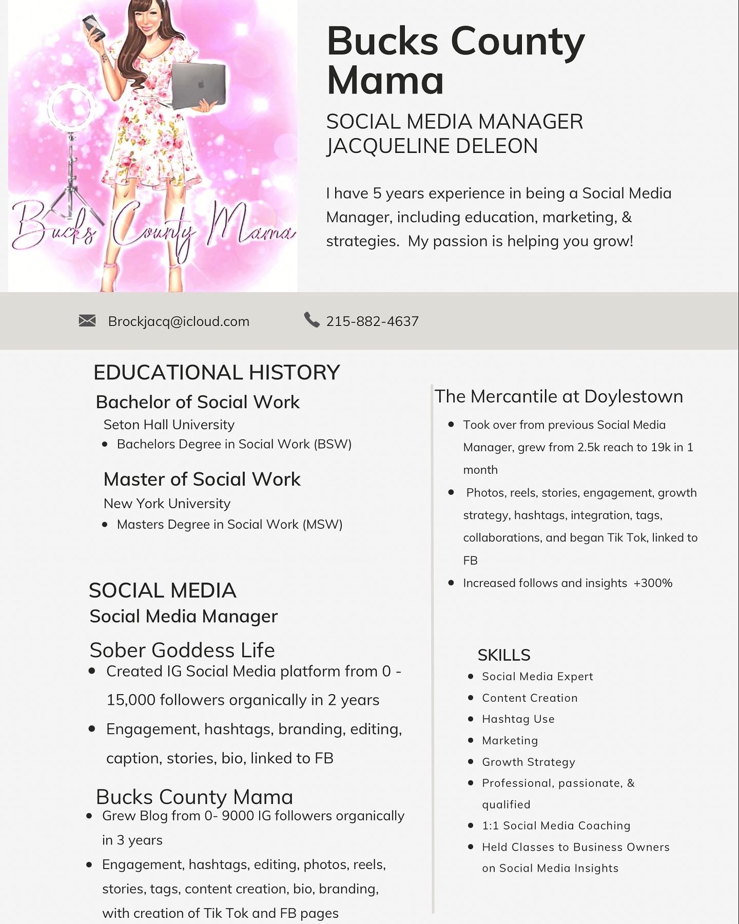 3 years ago no one was an influencer or had a versatile blog in Bucks County PA. I craved so much more from social media, a platform to support & highlight local businesses, connect people, share places & events, spirituality, family, sobriety, & humor. 4 months into creating “Bucks County Mama” on Instagram, Covid hit the world. It quickly turned into people are terrified and feel alone. I kept my mission, & blogged 2 years, charging zero money, just helping my community. In many ways, I was making amends to my home for any wrongs I did in active alcoholism. I openly shared my blended family, that we are a foster home, a police family, a chronic illness family, & a sober home. Social media can be a place of darkness, but also a place of Light, & I was here to spread it. Through these years I have been nominated in the Bucks Happening, news paper articles in Philadelphia and Bucks County, developed Tik Tok, Facebook, a BCM office, LLC, branding, & more! I host classes on social media 101 for business owners, host events, became a brand ambassador, & speaker to hospitality groups. My Tik Tok went viral, my IG 10,000 followers, and I am a full time social media manager to local businesses as well. I built my brand on daily hard work, including a “Bucks County Mama of the Month” highlighting local mothers, IG Live interviews with businesses called “Moments with Mama”, & being incredibly proud that I never had anyone help me, I grew authentically and my reputation is now very respected throughout Bucks County and beyond. I grew minute one to this minute by never giving up, on good days & hard days.