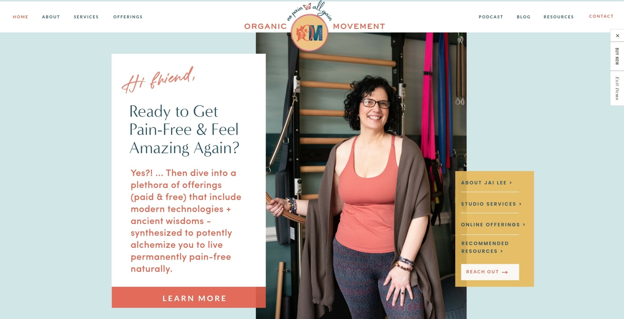 Hi, I’m Jai Lee Galanti, body strategist and founder of Organic Movement in Roswell, GA. I help modern health and fitness mavericks eradicate pain & immobility naturally – without drugs or surgery – by using low impact movement therapies and energetics.