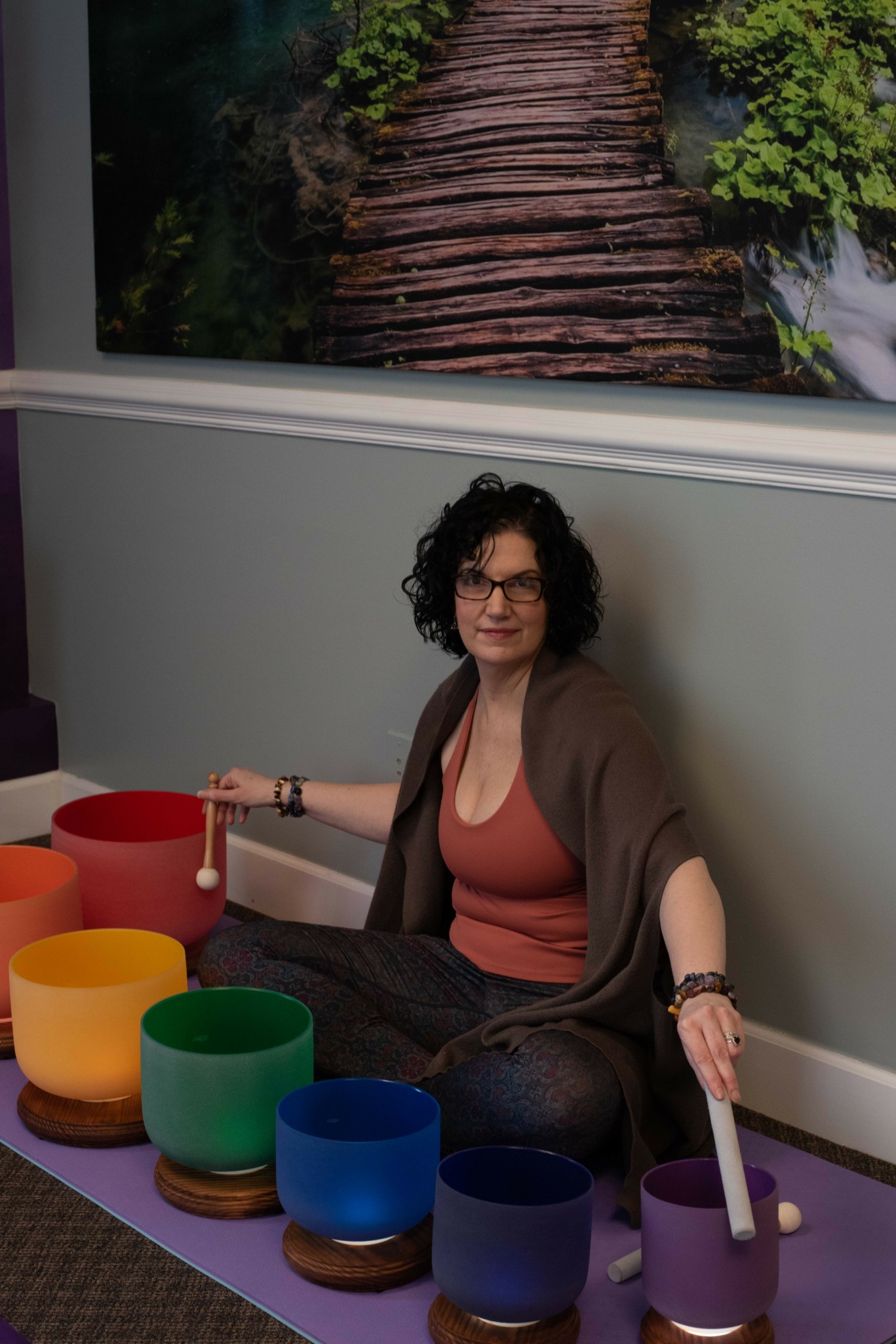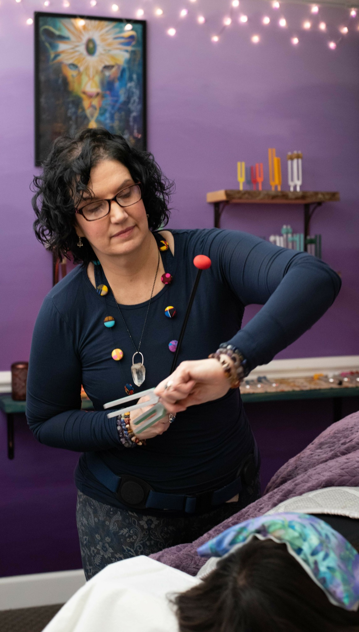 We worked together using a combination of modalities. AcuTonics sound healing (sound forks on the body acting as needleLESS acupuncture) was used to calm her nervous system, reduce inflammation, and relax muscular tension to then enable her to exercise. Rehabilitative Pilates was added to build atrophied muscles and balance the body, further reducing mobility pain. Lastly, I taught her how to incorporate a daily fascia release and lymphatic drainage practice at home on her own between studio sessions.