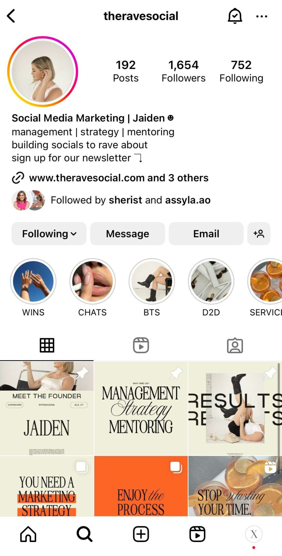 When I started social media management, I noticed early on that there were a lot (I mean A LOT) of people entering the market at the same time as me. There has been a spike in demand and people are capitalizing on it. I knew I would have to build a reputation so I immediately started networking with “veterans” of the industry. I DM’d them, commented on their posts, got on their email lists, downloaded their freebies… and then they started to notice me. I joined a private group of them on IG, where they were discussing ins and outs of the industry and I started engaging there too. After I started to have real conversations with them, they let me into their circle and did the same for me. Some of my biggest spurts of growth have been because they shared about me, endorsed me, or referred me clients, and now I have built trust in the industry.