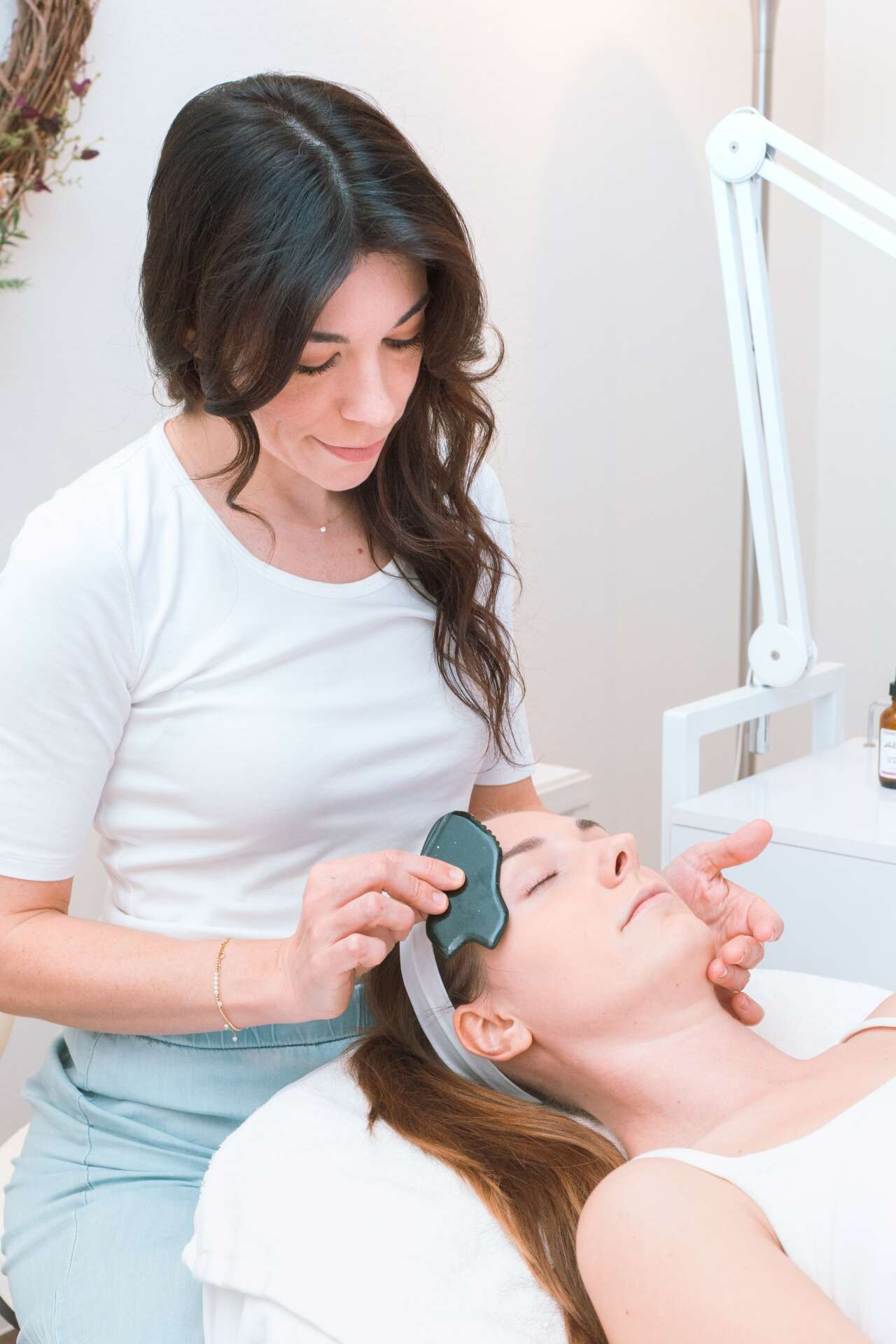 If I had to describe my approach to facial treatments I would say that I layer classical European facial techniques with gentle skin rejuvenation technologies such as LED wavelengths, microcurrent and customized serums infused using ultrasound and oxygen. The goal of my treatments is to build the skin’s overall health over-time rather that assault it with heavy peels and strong lasers which have their place, but are not for everyone and are often overprescribed. I teach my clients how to care for their skin at home and tailor their home-care routines to their personalities and their lifestyles. This is one of my favorite challenges. Creating an effective skincare regimen that each client will enjoy performing on themselves at home is how I see optimal results. It’s a partnership!
