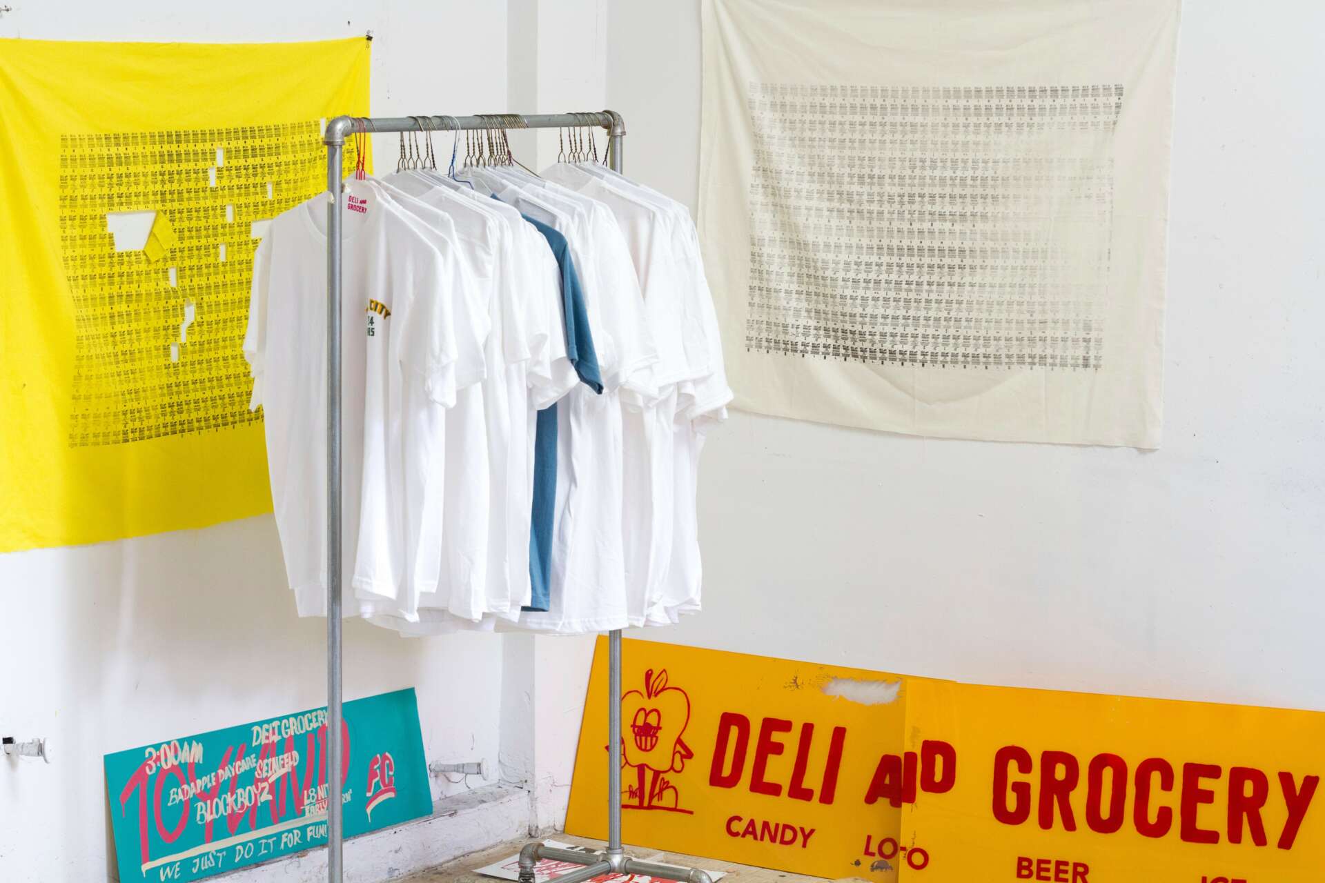 The name Deli & Grocery came about during the summer between my Junior and Senior year at MICA (Maryland Institute College of Art). I met Roman Finkelstein a few years earlier at MICA. He was also from NYC. During that transitional summer between our junior and senior years my dad, who is an artist, was away, so Roman and I took over his studio and dubbed it Toyland. We would meet up there almost every night after our internships, spending the hot summer nights projecting movies like The French Connection or episodes of Seinfeld on the paint splattered wall, drawing, and coming up with these ideas for t-shirt graphics based on small business and places we frequented. It was a very productive summer. We had fun and created the base of what would become Deli & Grocery. Towards the end of the summer when I started to think about what my senior thesis project could be, I realized that this stack of t-shirt ideas was the answer. They were essentially souvenir T-shirt designs, but for places that wouldn’t typically have souvenirs, and we had come up with enough ideas and concepts that we could make something tangible out of all of them. Roman and I started bouncing names back and forth. After some time we landed on Deli & Grocery. It represented everything we cared about in the brand – NYC, small businesses, and bright iconic signage. It was perfect.