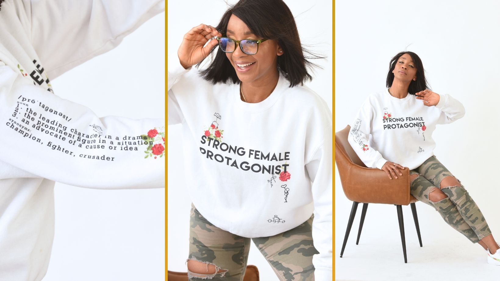 Take, for instance, our “Currently Butterflying” design – a tribute to the ongoing journey of growth, transformation, and self-discovery. Or perhaps our “Strong Female Protagonist” piece – a celebration of your resilience, your strength, your unwavering spirit, even in the midst of tears and trials.