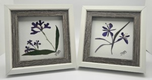 Unlike prints or paintings, every piece I create is truly unique. The flowers I use are harvested at their peak, carefully pressed and dried, then thoughtfully arranged to highlight their natural beauty. The process can take weeks from harvest to finished piece, as flowers must be properly dried to preserve their color and form before being sealed and protected for longevity.